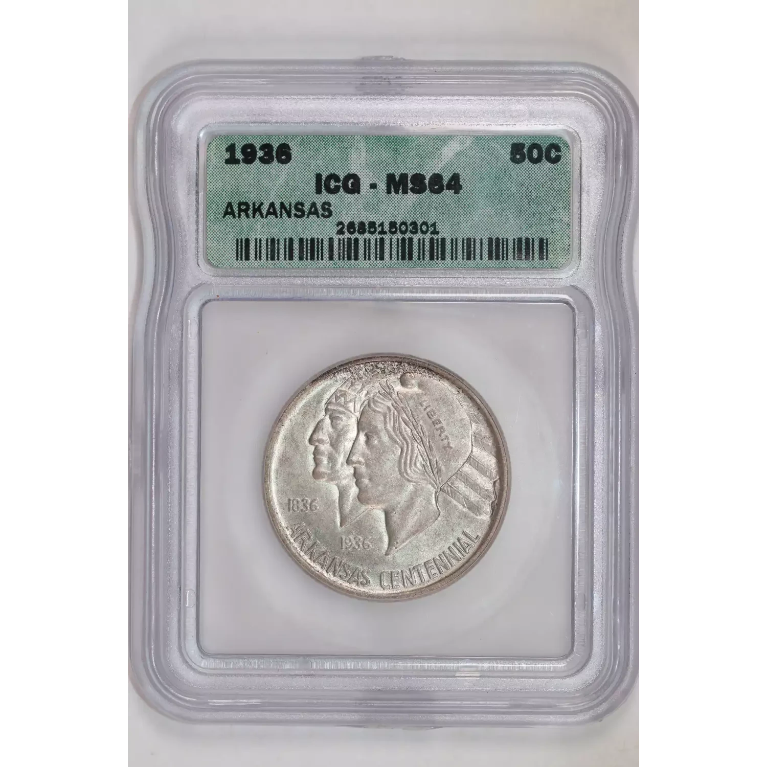 1936 ARKANSAS SILVER COMMEMORATIVE HALF DOLLAR ICG MS64