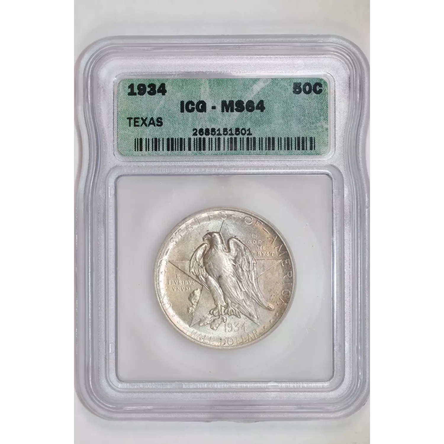 1934 TEXAS SILVER COMMEMORATIVE HALF DOLLAR ICG MS64