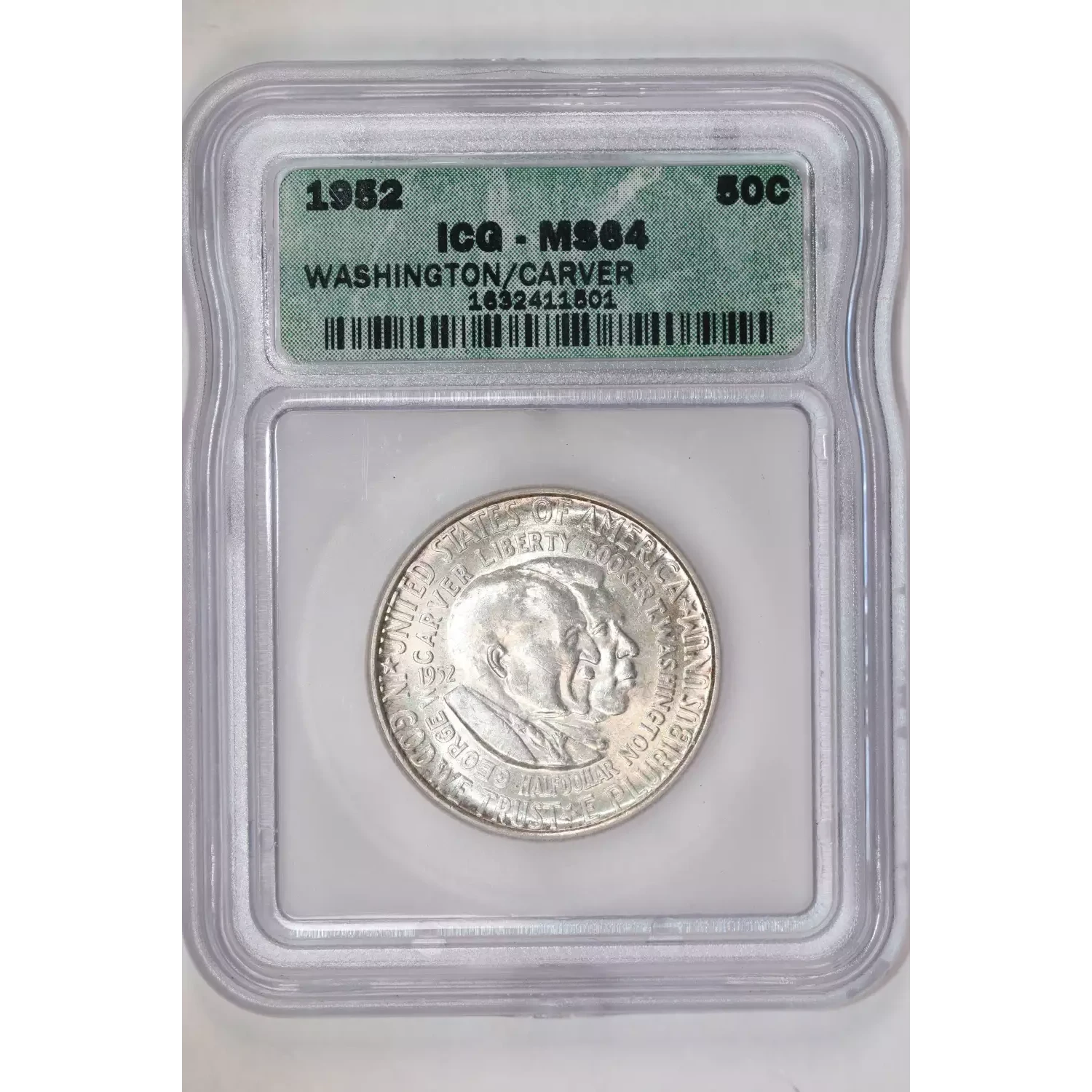 1952 WASHINGTON CARVER SILVER COMMEMORATIVE HALF DOLLAR ICG MS64