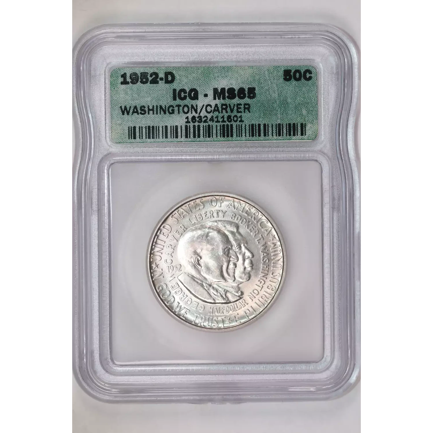 1952-D WASHINGTON CARVER SILVER COMMEMORATIVE HALF DOLLAR ICG MS65