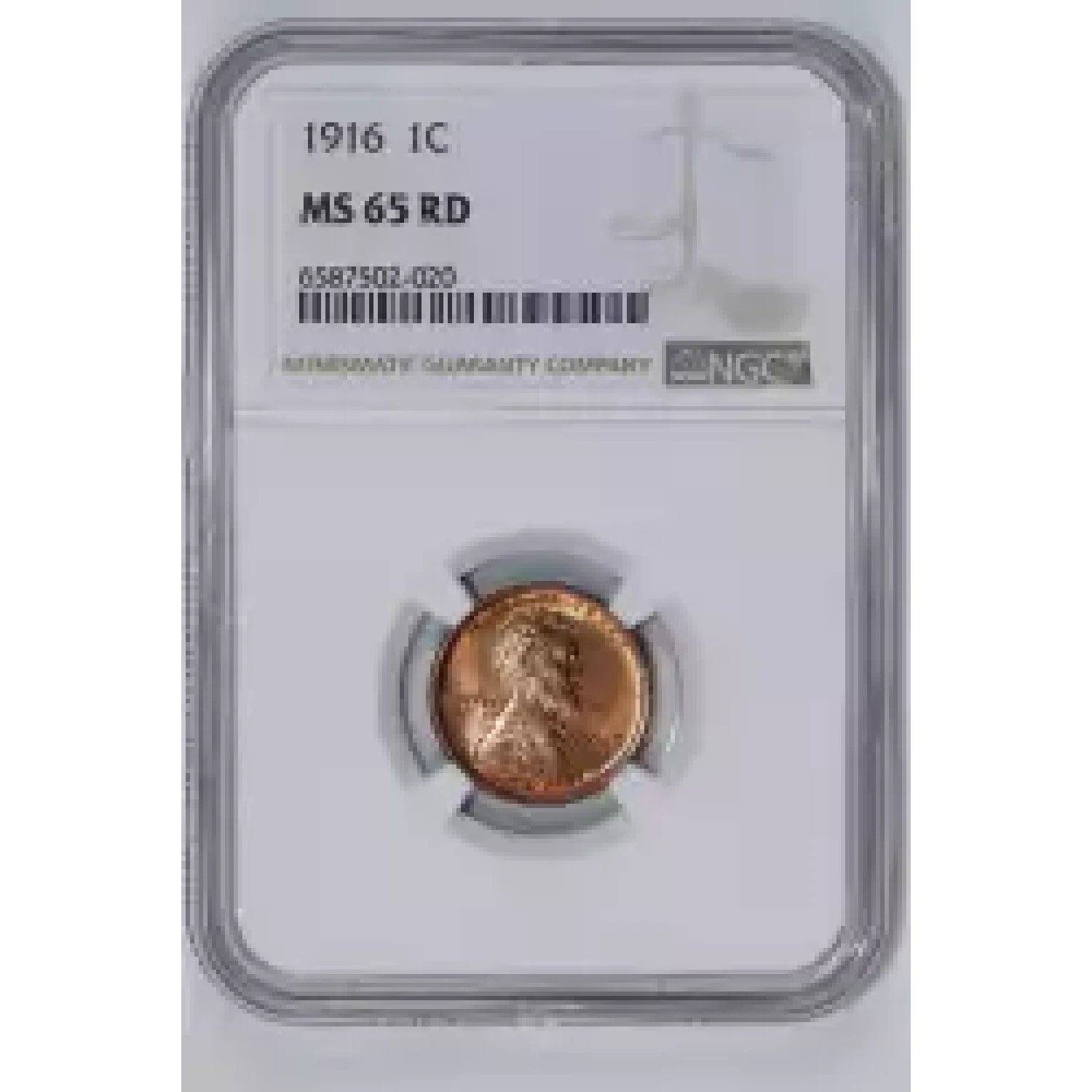 1916 Small Cents Lincoln, Wheat Ears Reverse NGC MS-65 RD