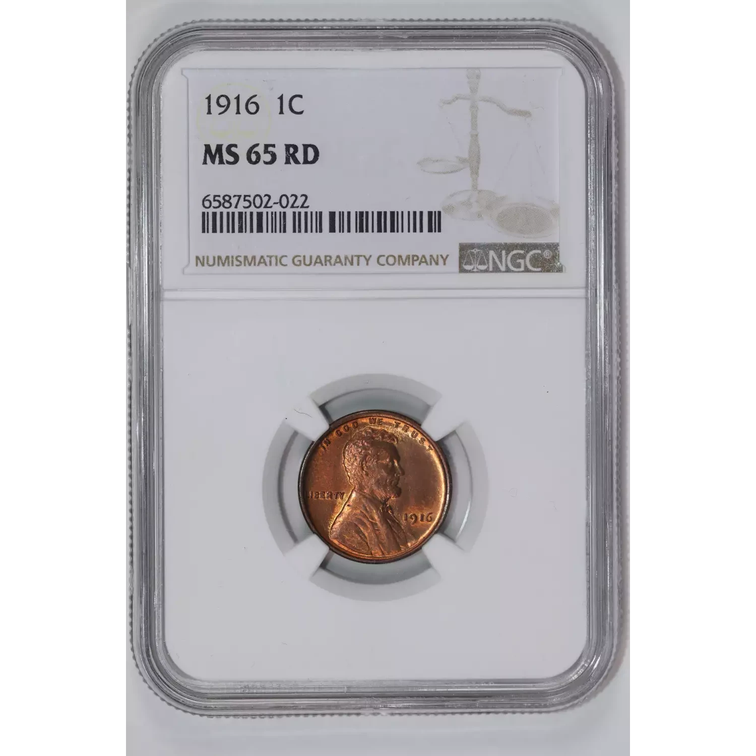 1916 LINCOLN WHEAT CENT NGC MS65 RED