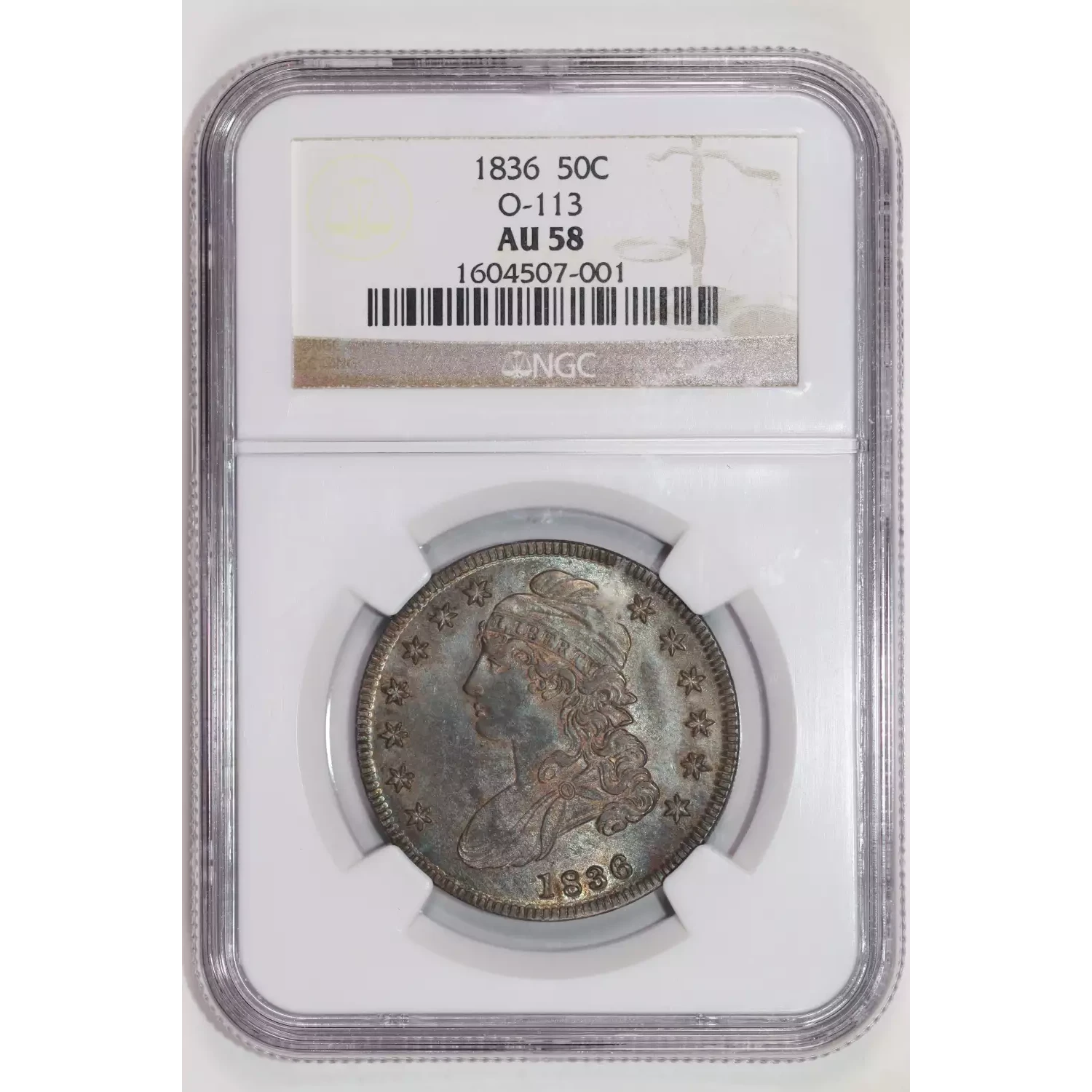 1836 LETTERED EDGE "O-113" CAPPED BUST HALF DOLLAR NGC AU58