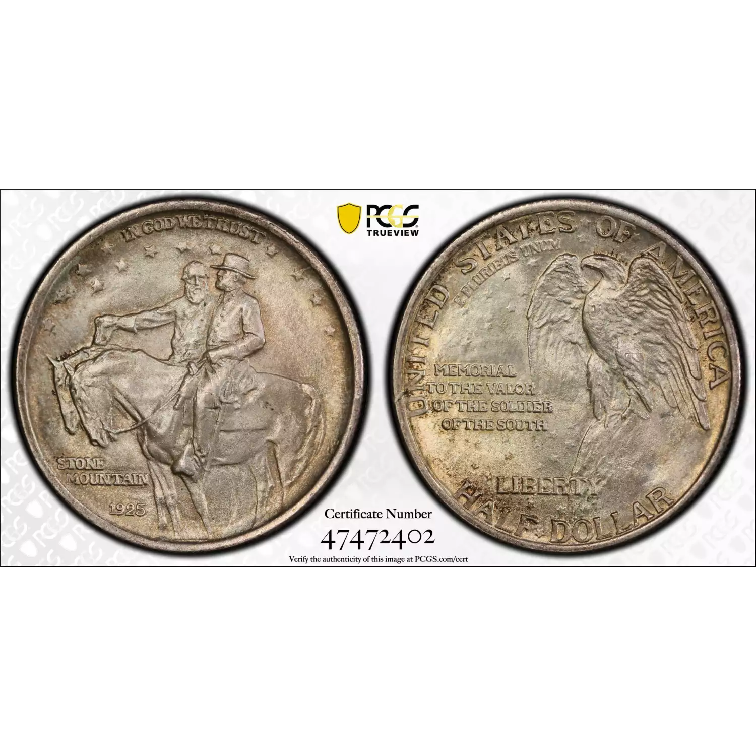 1925 STONE MOUNTAIN SILVER COMMEMORATIVE HALF DOLLAR PCGS MS66