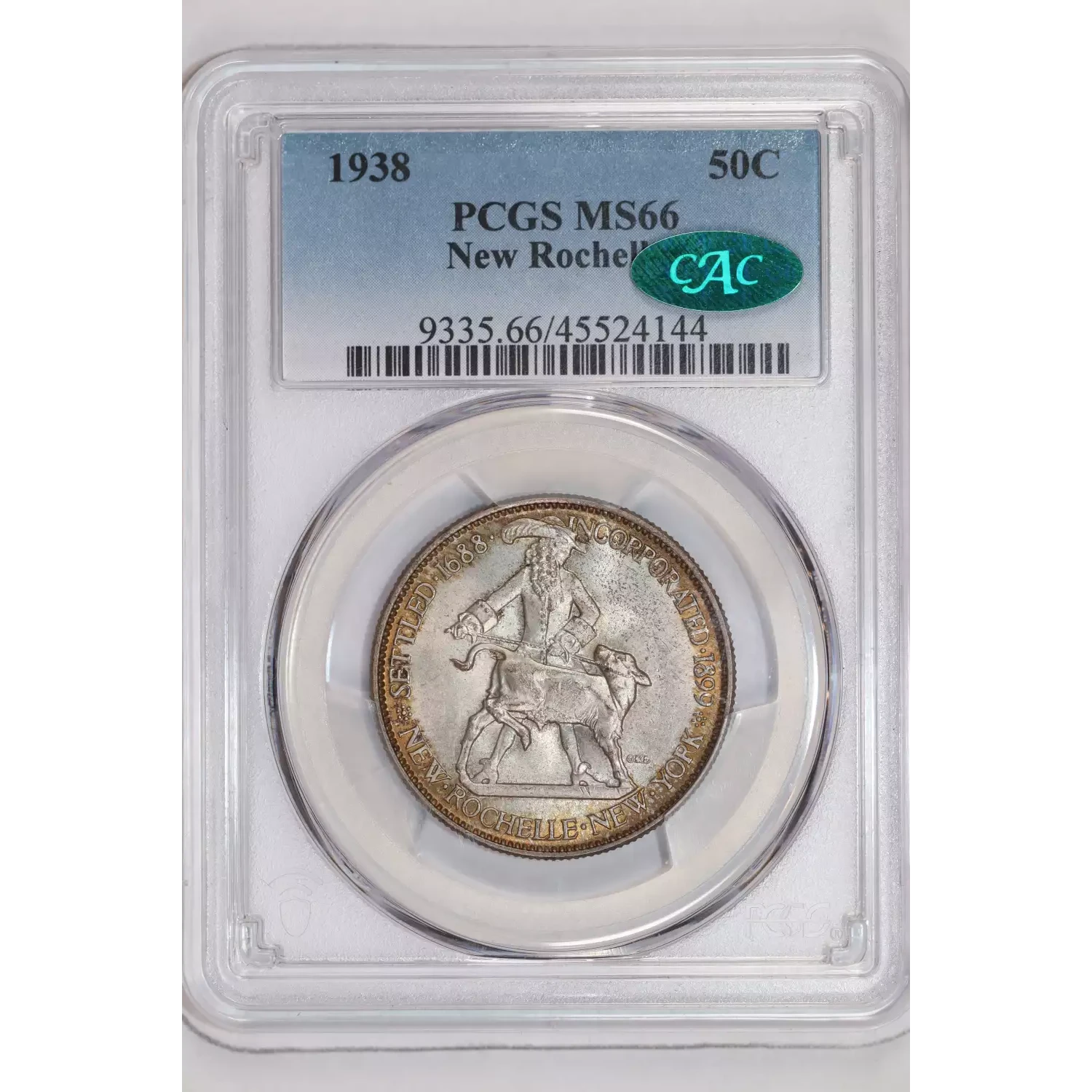 1938 NEW ROCHELLE SILVER COMMEMORATIVE HALF DOLLAR PCGS MS66 - PQ NICE TONING! CAC