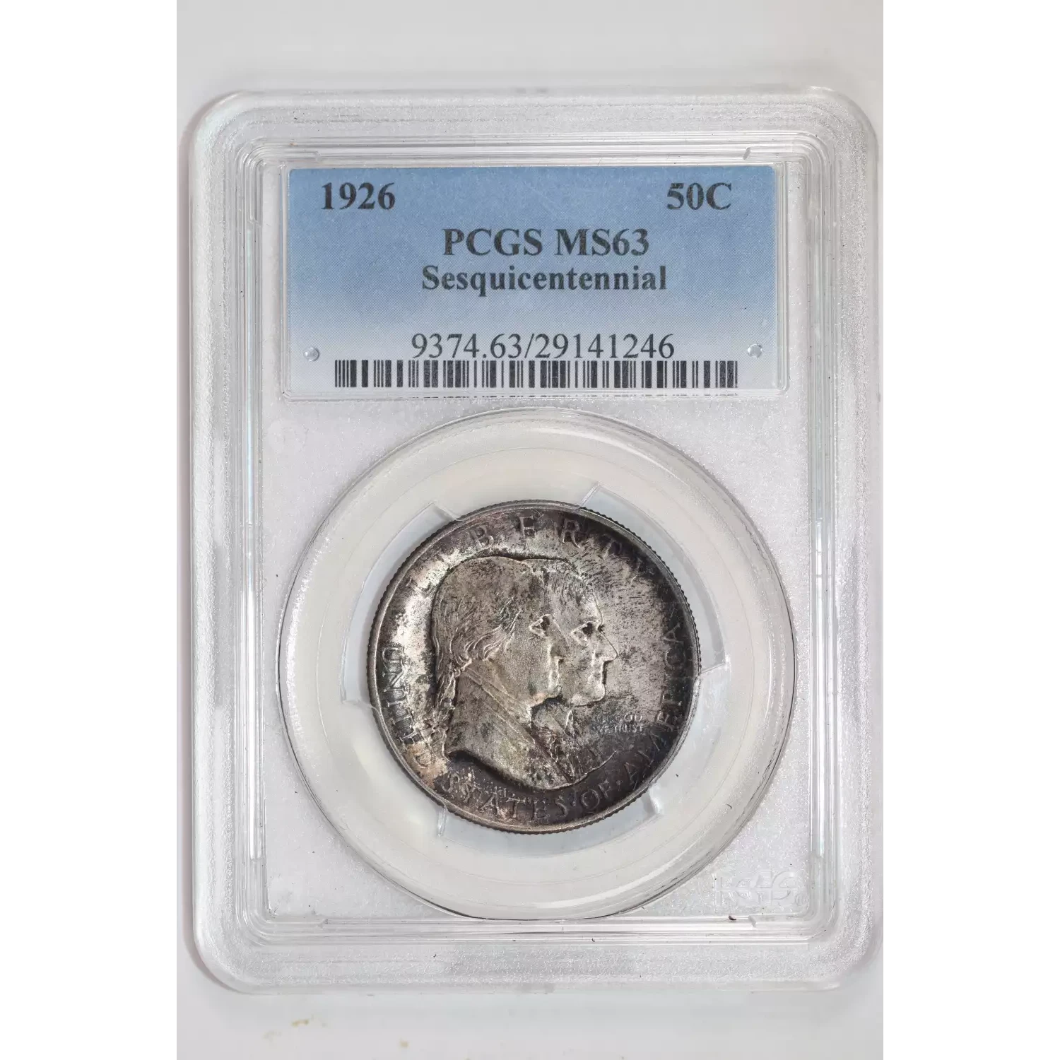 1926 SESQUICENTENNIAL SILVER COMMEMORATIVE HALF DOLLAR PCGS MS63