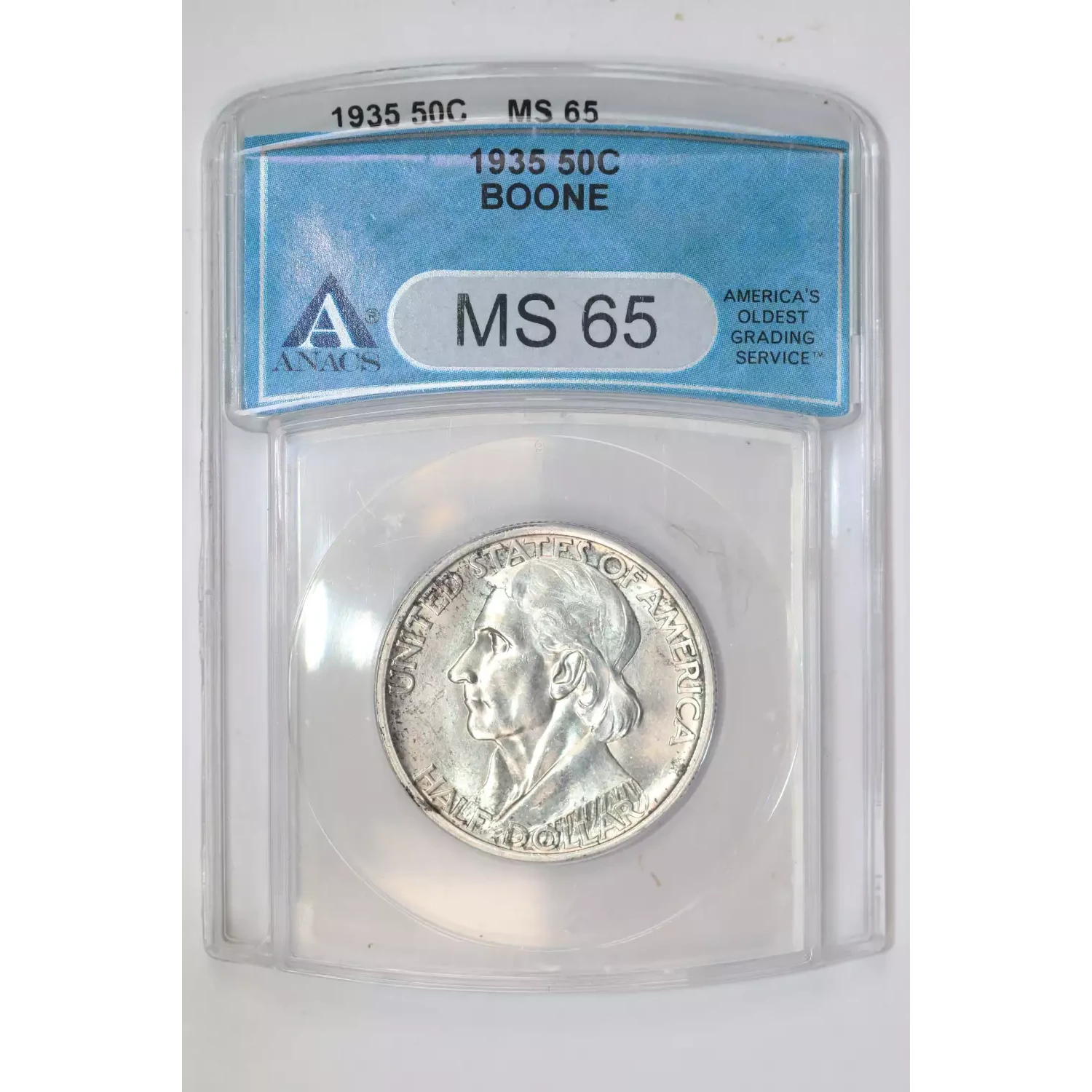 1935 BOONE SILVER COMMEMORATIVE HALF DOLLAR ANACS MS65