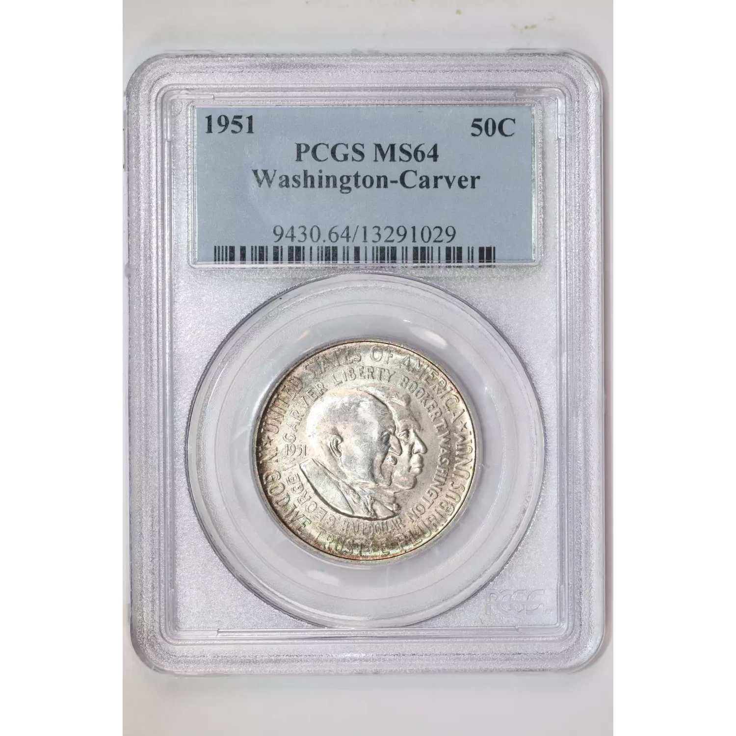 1951 WASHINGTON CARVER SILVER COMMEMORATIVE HALF DOLLAR PCGS MS64