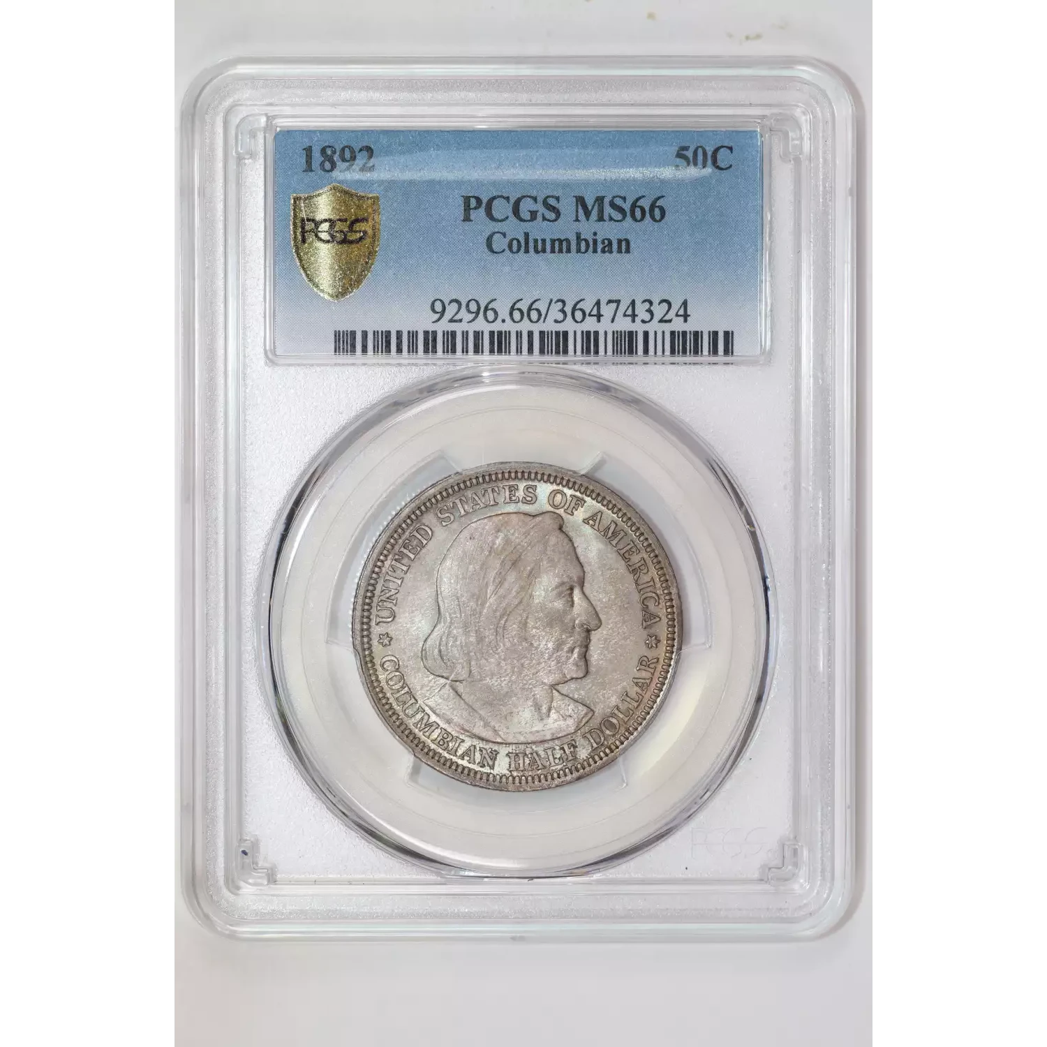 1892 COLUMBIAN SILVER COMMEMORATIVE HALF DOLLAR PCGS MS66
