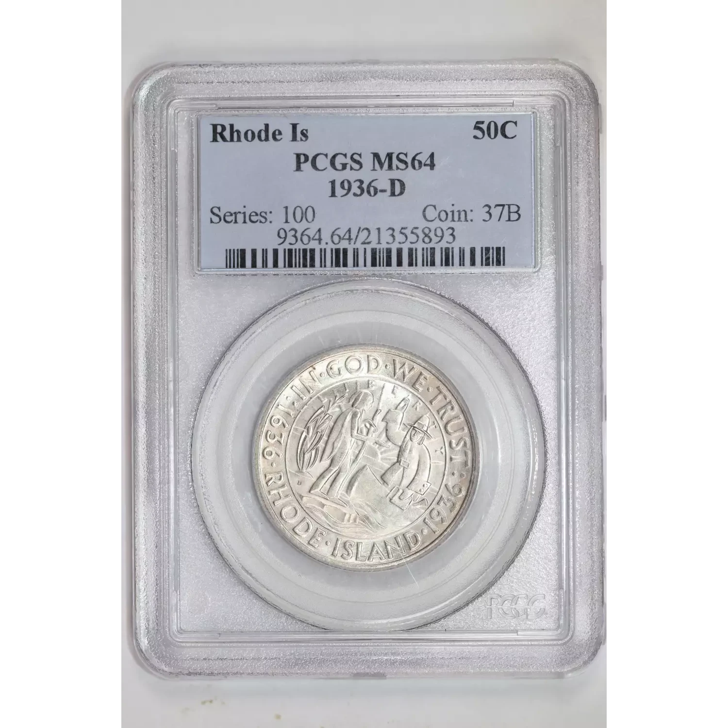 1936-D RHODE ISLAND SILVER COMMEMORATIVE HALF DOLLAR PCGS MS64