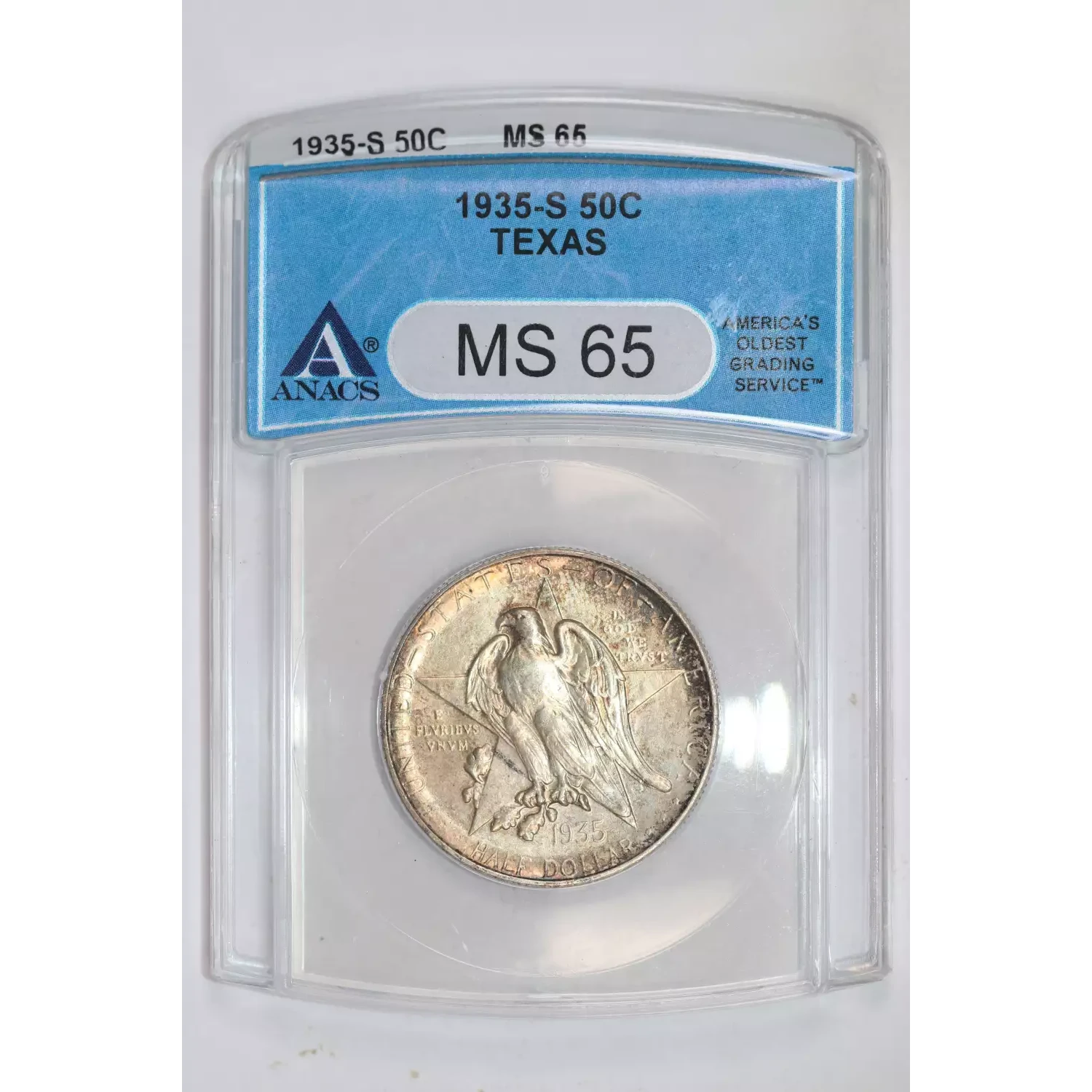 1935-S TEXAS SILVER COMMEMORATIVE HALF DOLLAR ANACS MS65