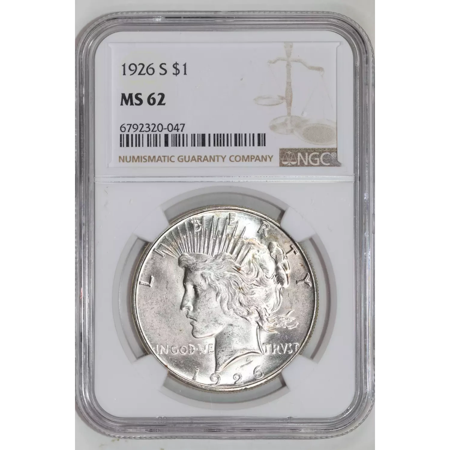 1926-S PEACE DOLLAR NGC MS62