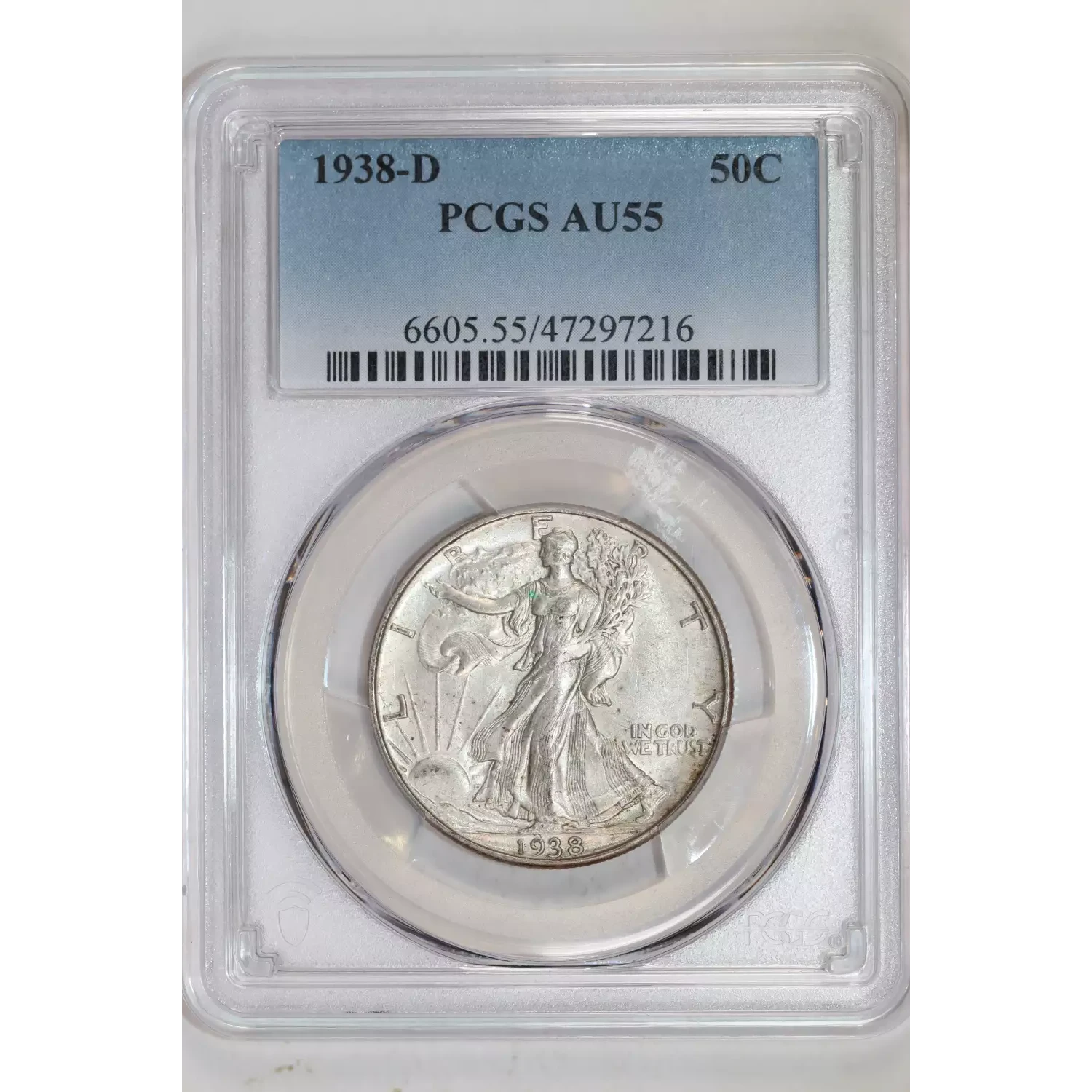 1938-D WALKING LIBERTY HALF DOLLAR PCGS AU55