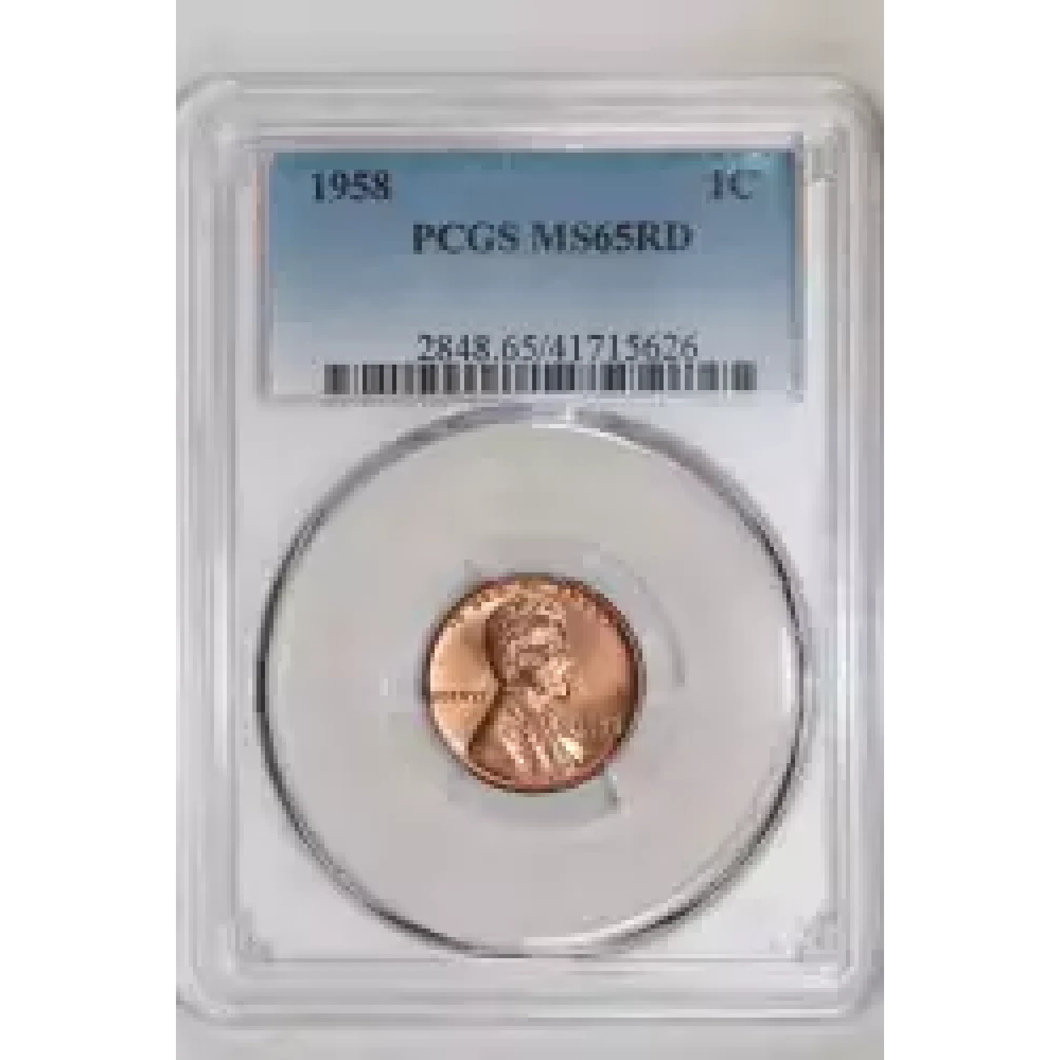 1958 Small Cents Lincoln, Wheat Ears Reverse PCGS MS-65 RD