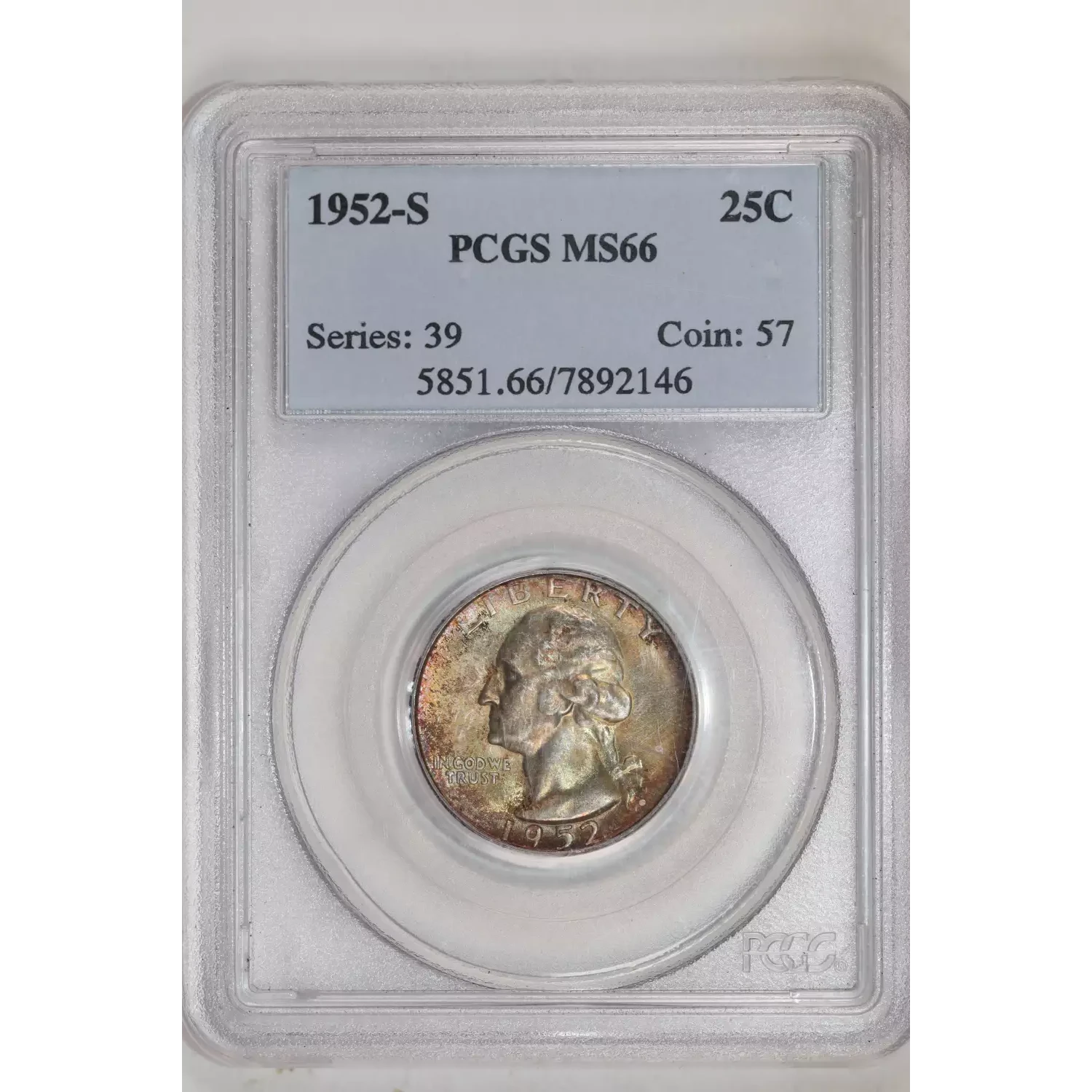 1952-S WASHING QUARTER PCGS MS66 NICE TONING!