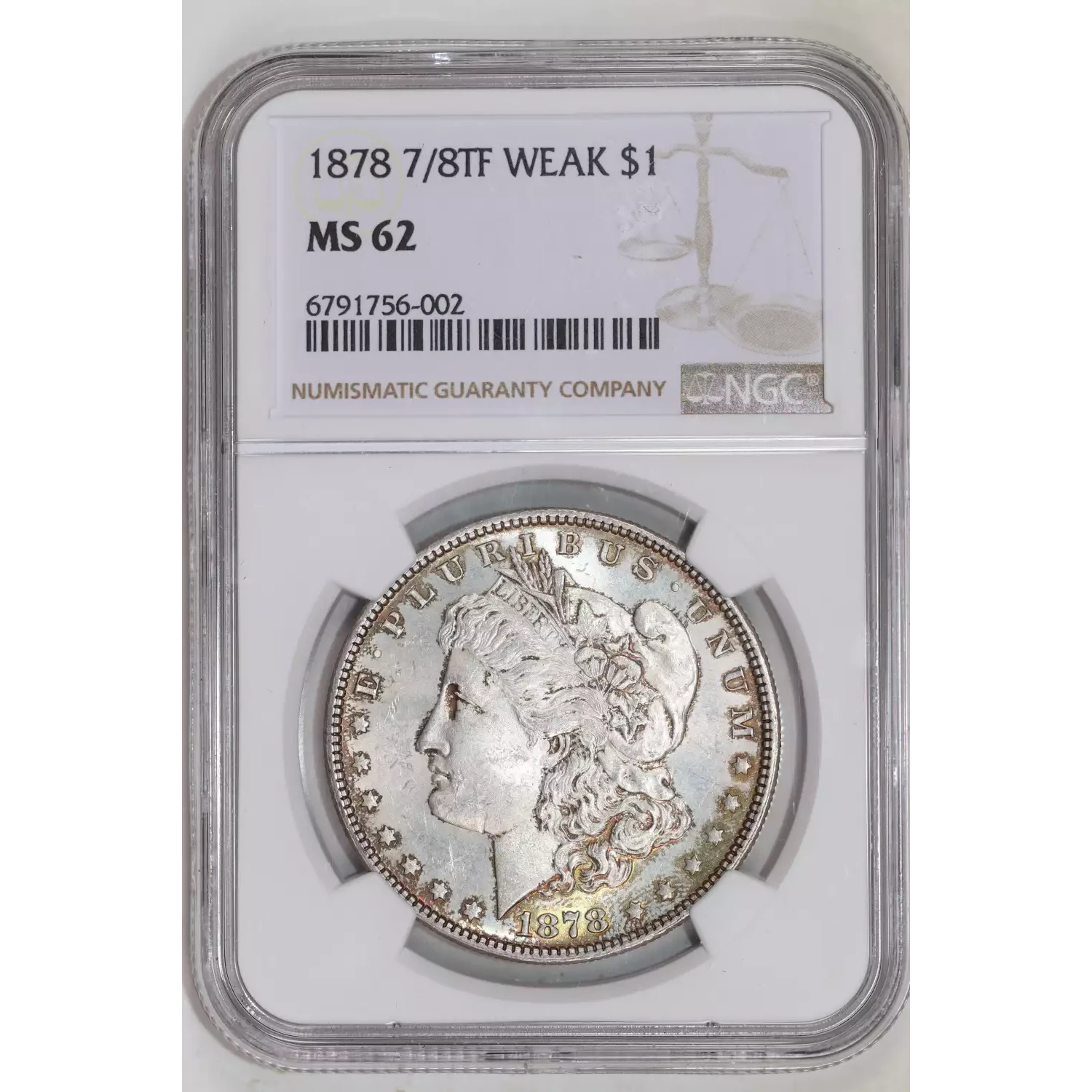 1878 7/8TF WEAK MORGAN DOLLAR NGC MS62 PQ ORIGINAL!