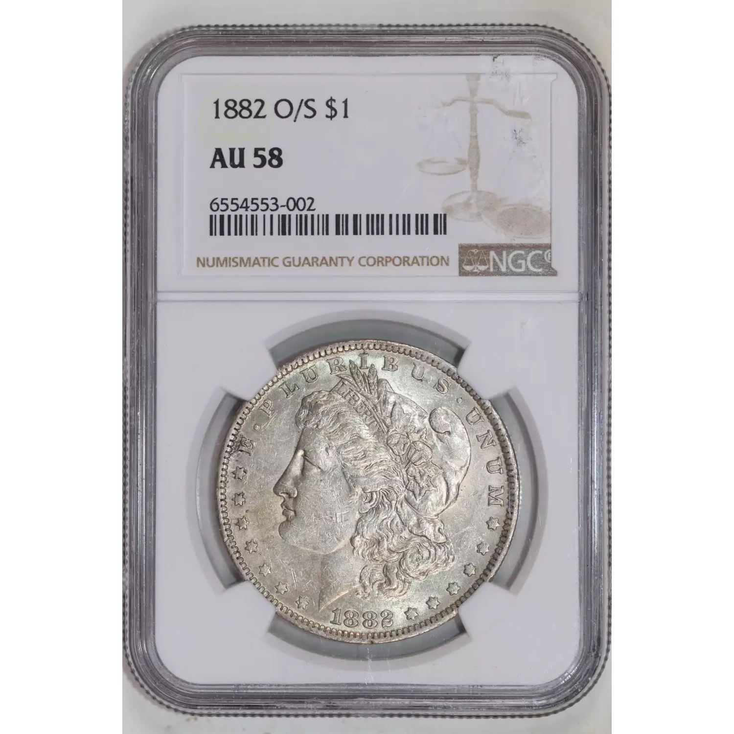 1882-O/S STRONG MORGAN DOLLAR NGC AU58