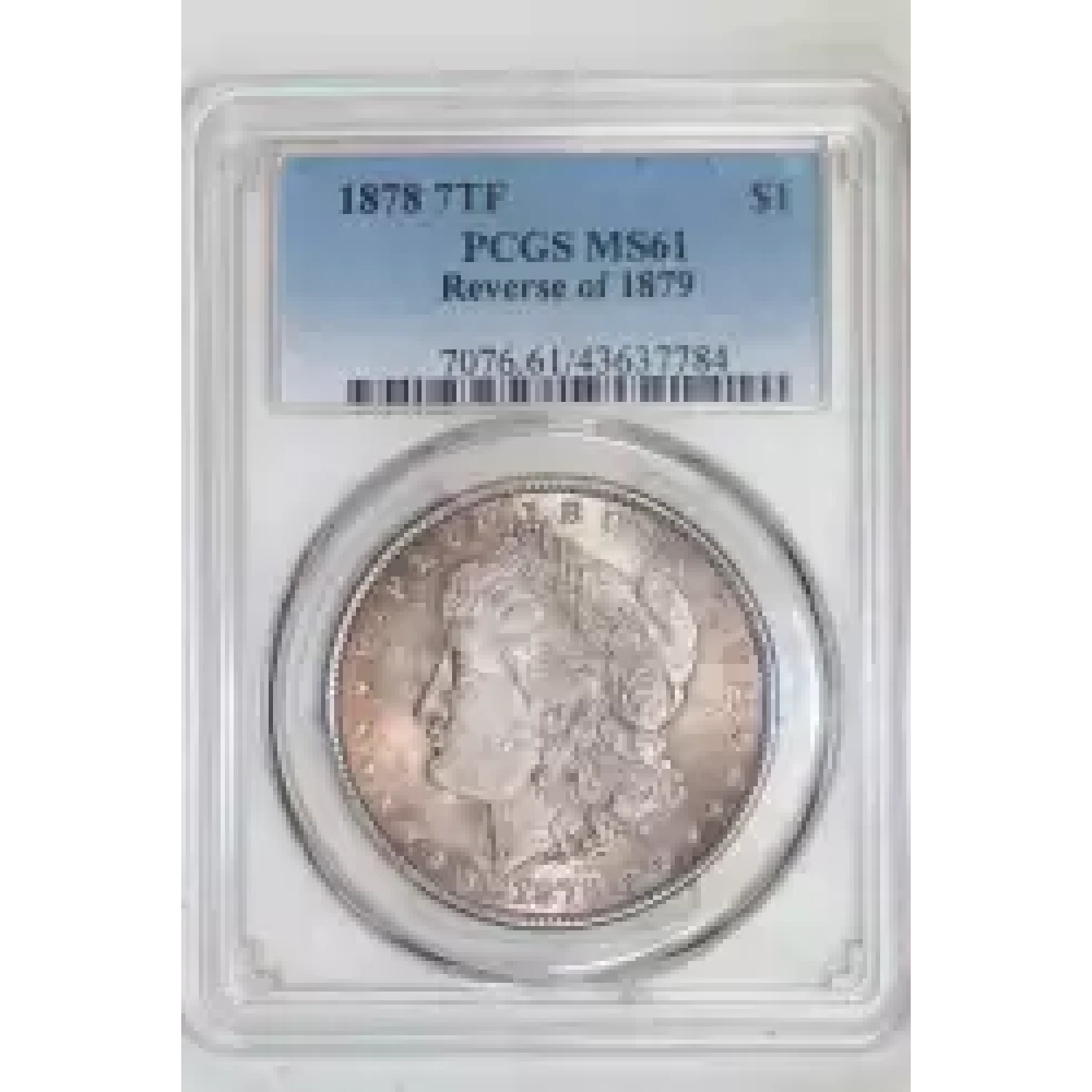 1878 Morgan Silver Dollar PCGS MS-61 7TF, Reverse of 1879