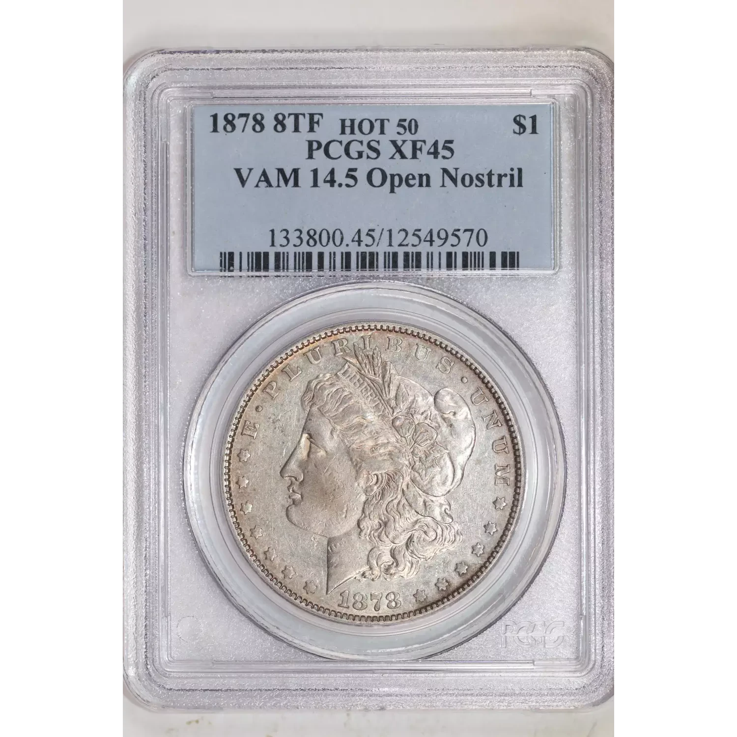 1878 8TF VAM-14.5 "OPEN NOSTRIL" HOT 50 MORGAN DOLLAR PCGS XF45
