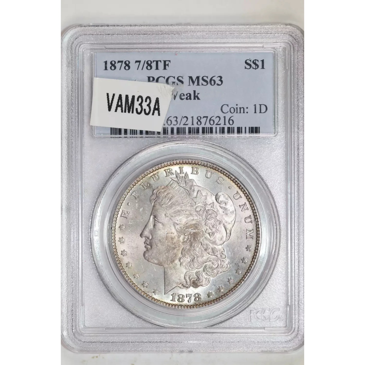 1878 7/8TF VAM-33A MORGAN DOLLAR PCGS MS63 - FLASHY PQ!