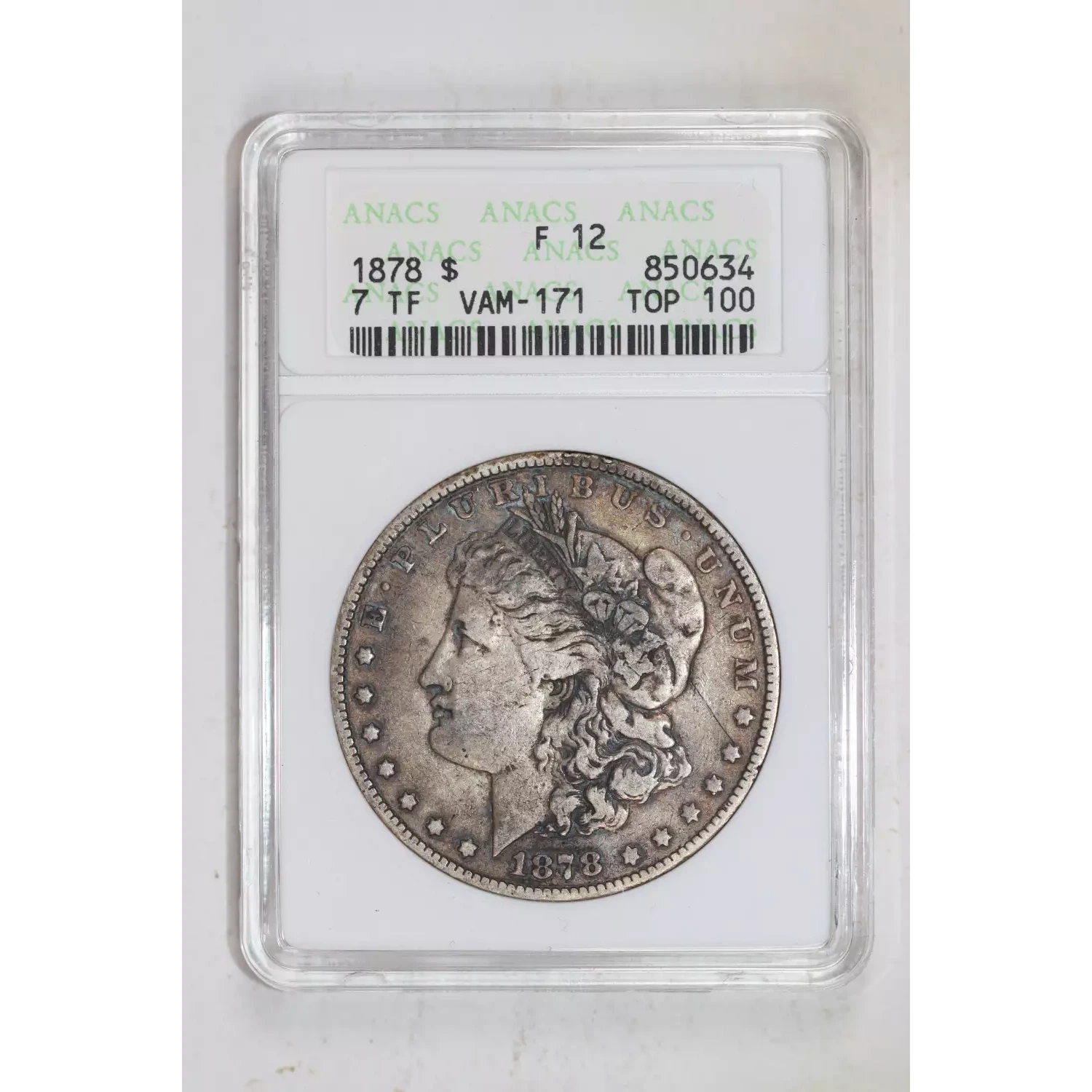 1878 7TF REVERSE 1878 VAM-171 TRIPLE R MORGAN DOLLAR ANACS F12
