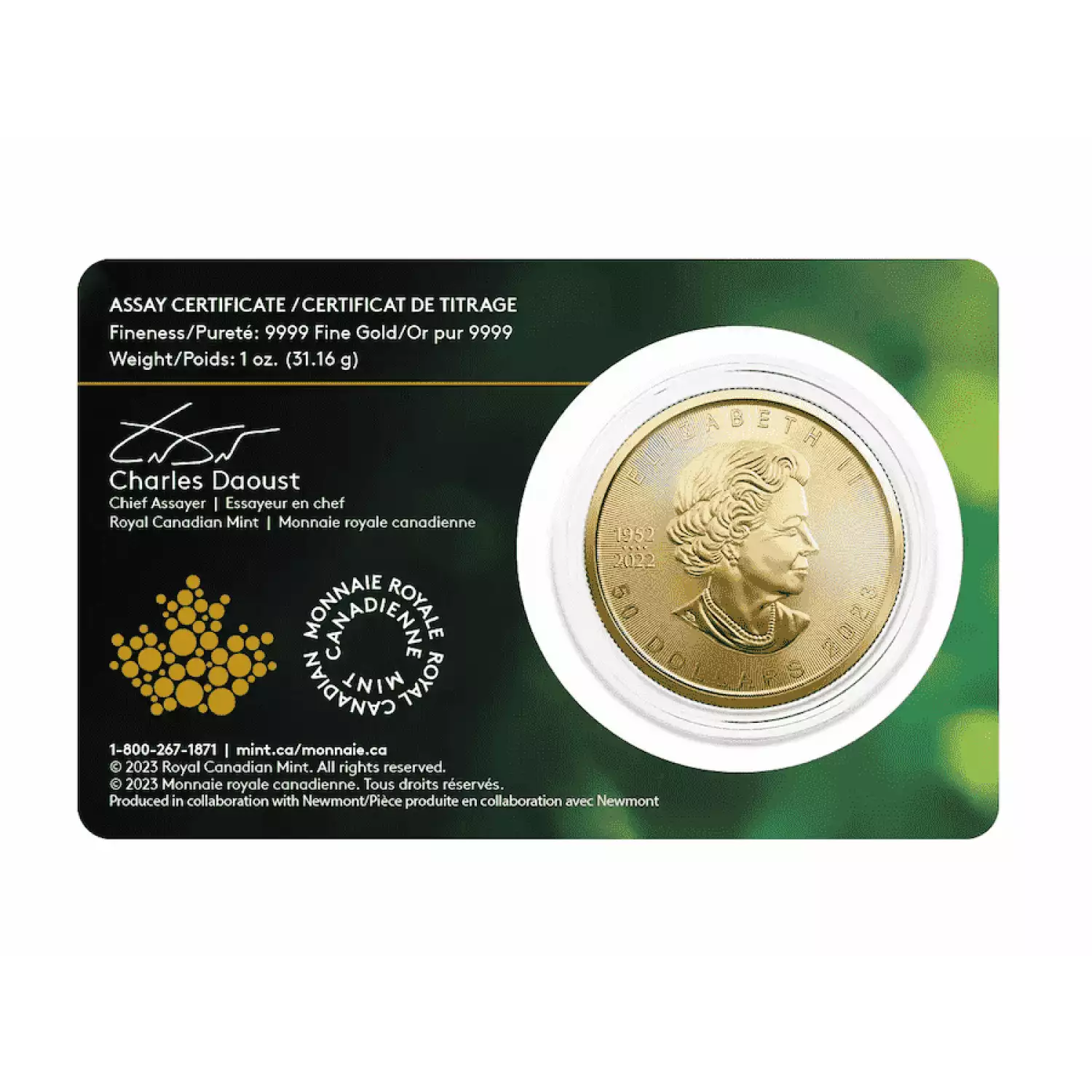 Weight: The Canadian Gold Maple Leaf is available in various weights, including 1/20 oz, 1/10 oz, 1/4 oz, 1/2 oz, and 1 oz. Each weight signifies the actual gold content in troy ounces.