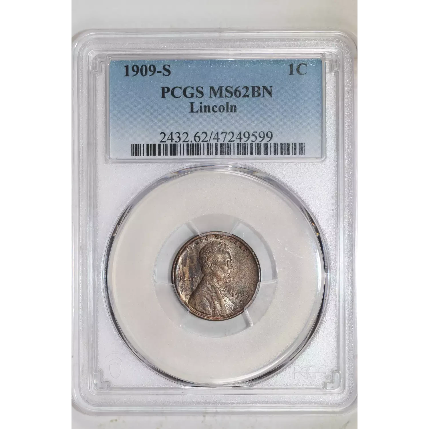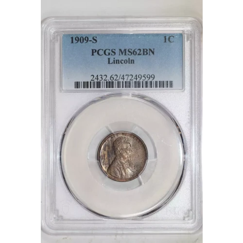 1909-S LINCOLN WHEAT CENT PCGS MS62 BN
