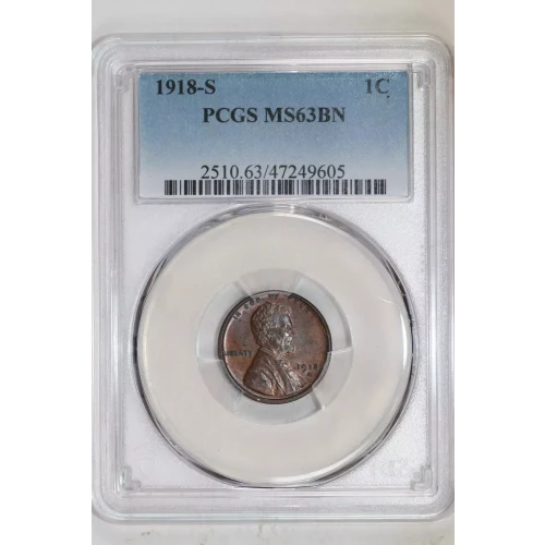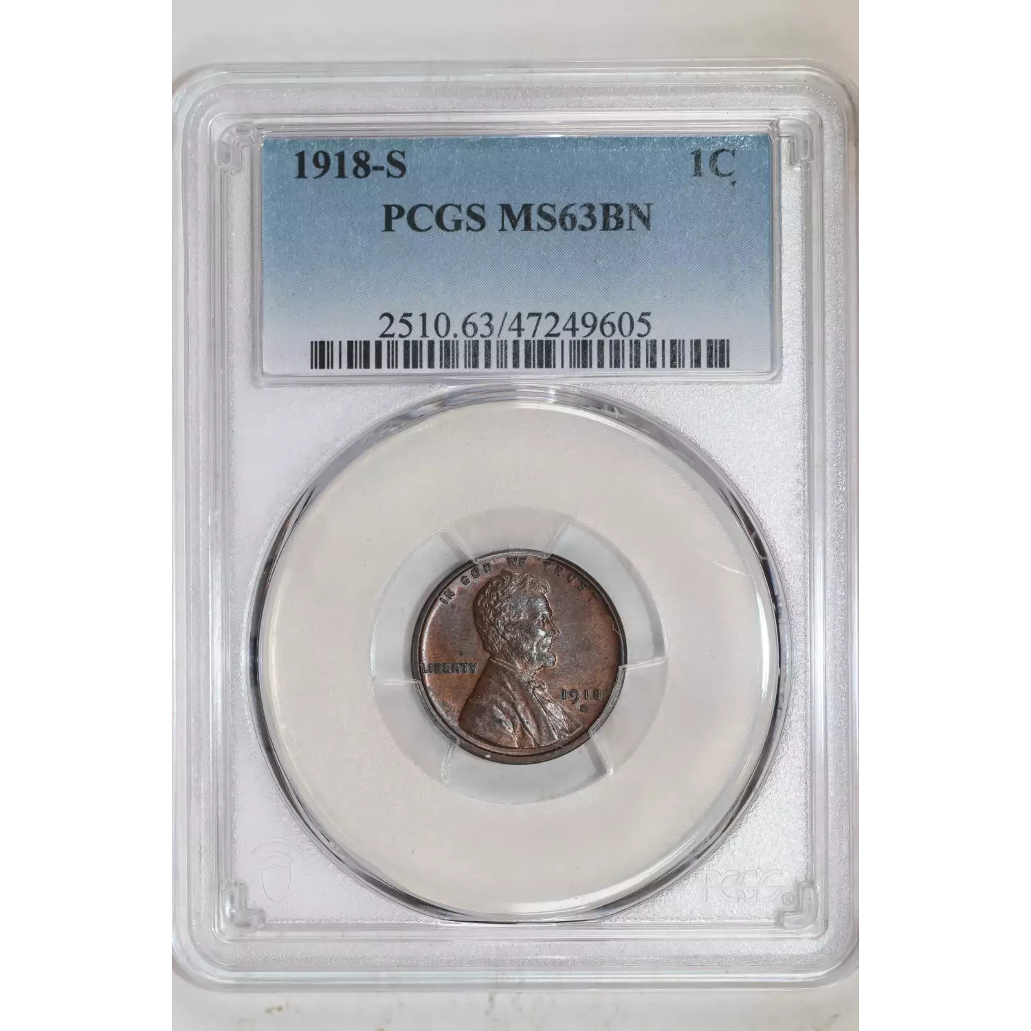 1918-S LINCOLN WHEAT CENT PCGS MS63 BN