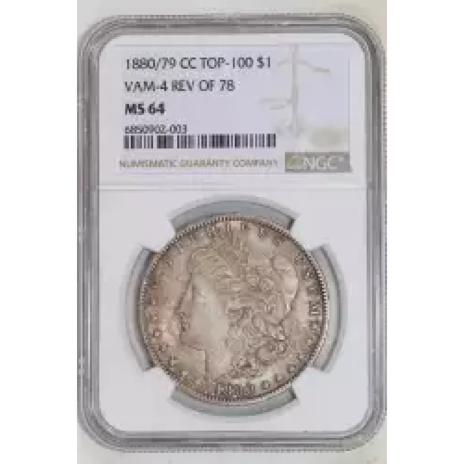 1880-CC REVERSE 1878 VAM-4 "80/79" TOP 100 MORGAN DOLLAR NGC MS64
