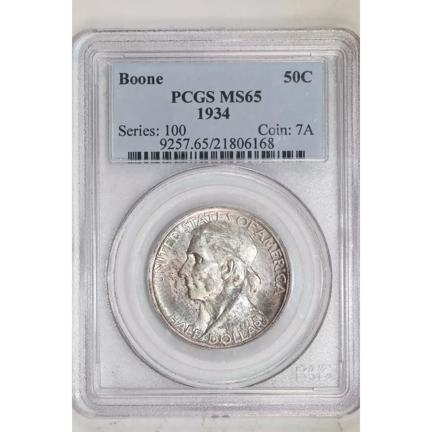 1934 BOONE SILVER COMMEMORATIVE HALF DOLLAR PCGS MS65