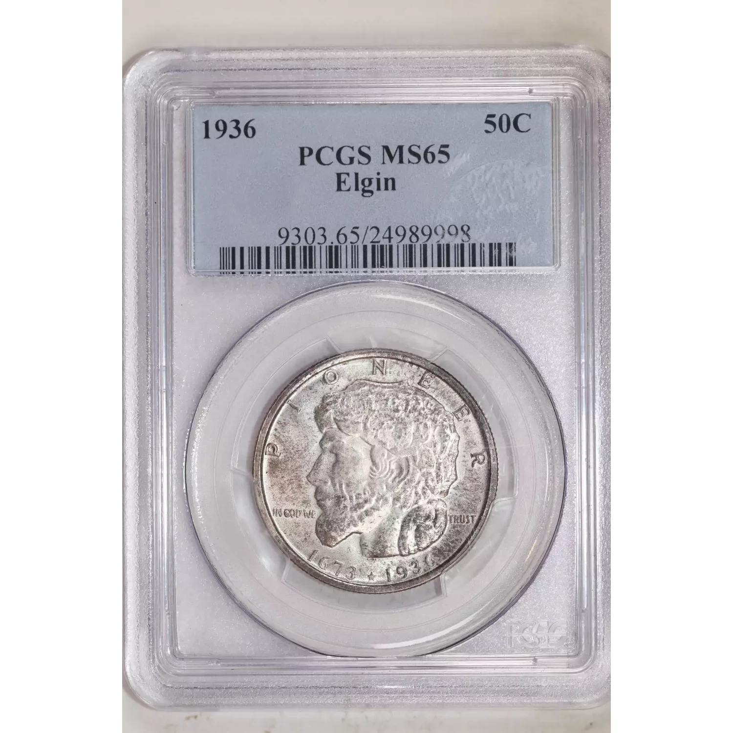 1936 ELGIN SILVER COMMEMORATIVE HALF DOLLAR PCGS MS65