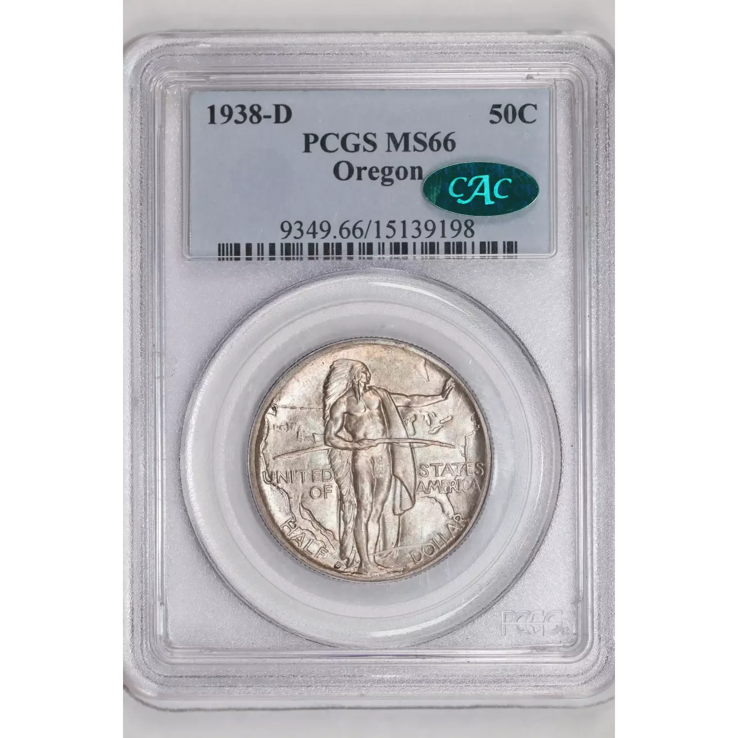 1938-D OREGON SILVER COMMEMORATIVE HALF DOLLAR PCGS MS66 CAC