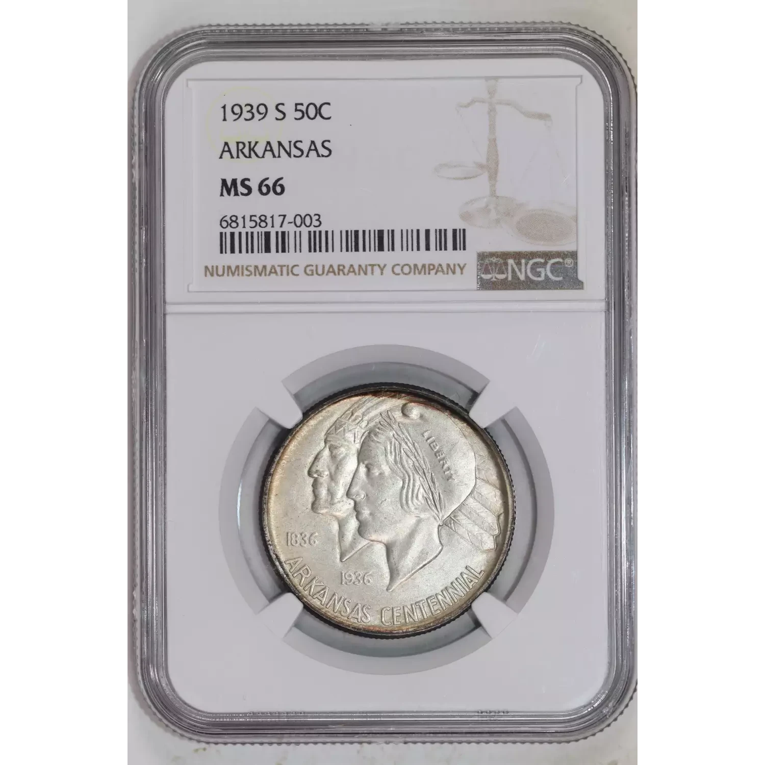 1939-S Classic Commemorative Arkansas Centennial NGC MS-66 ARKANSAS