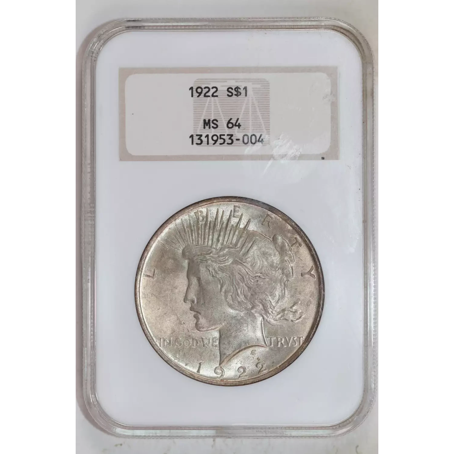 1922 PEACE DOLLAR NGC MS64 GEN 3 EMBOSSED OLD FATTY HOLDER! RARE! LOOKS NICER!