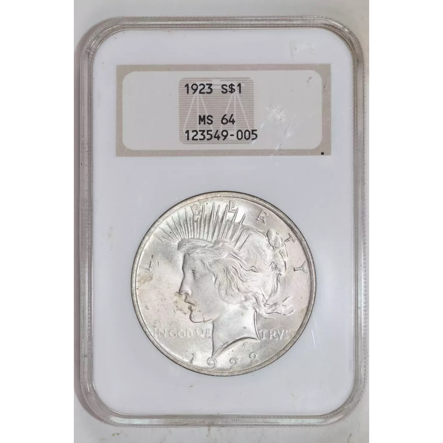 1923 PEACE DOLLAR NGC MS64 GEN 3 EMBOSSED OLD FATTY HOLDER! RARE! LOOKS NICER!