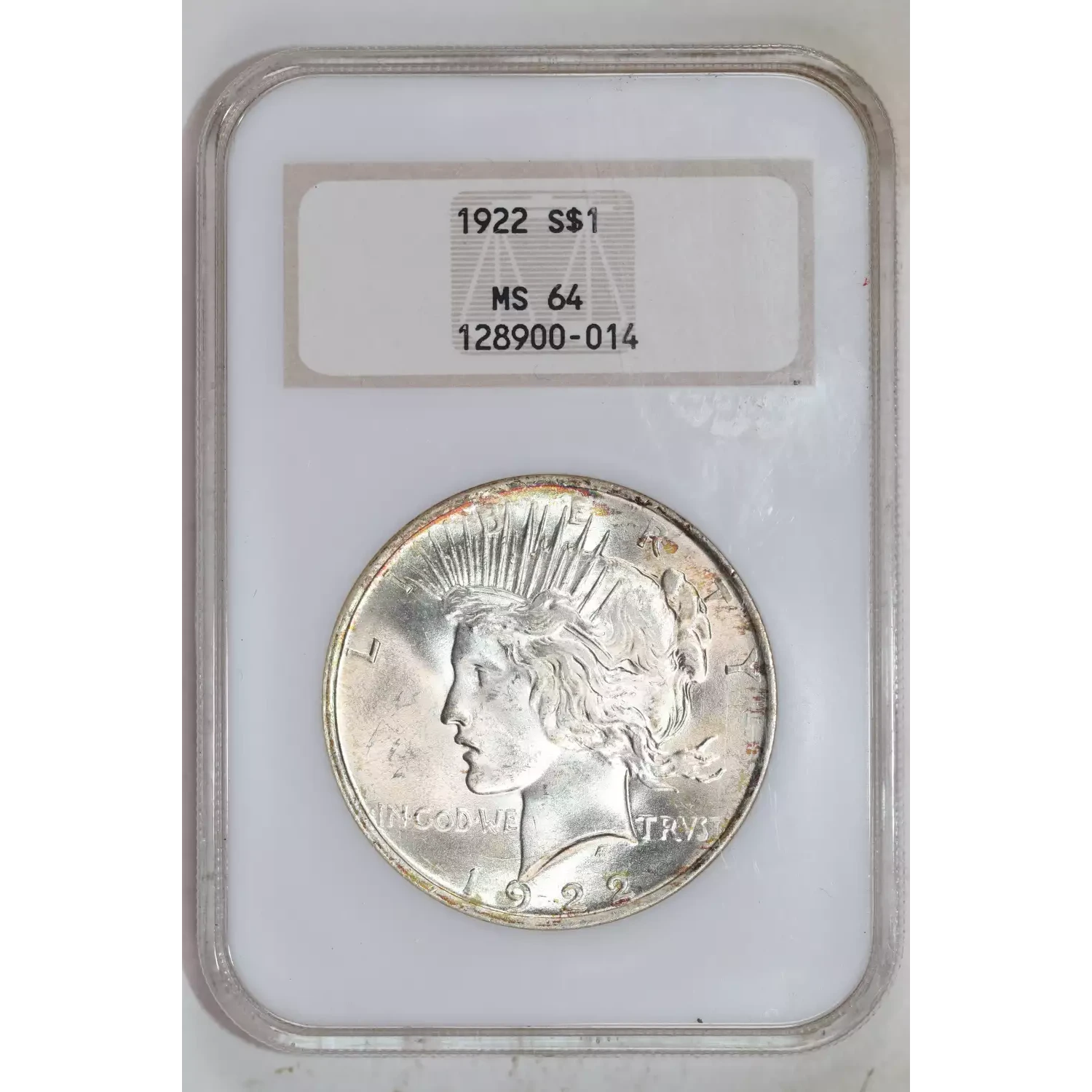 1922 PEACE DOLLAR NGC MS64 GEN 3 EMBOSSED OLD FATTY HOLDER! RARE! LOOKS NICER!