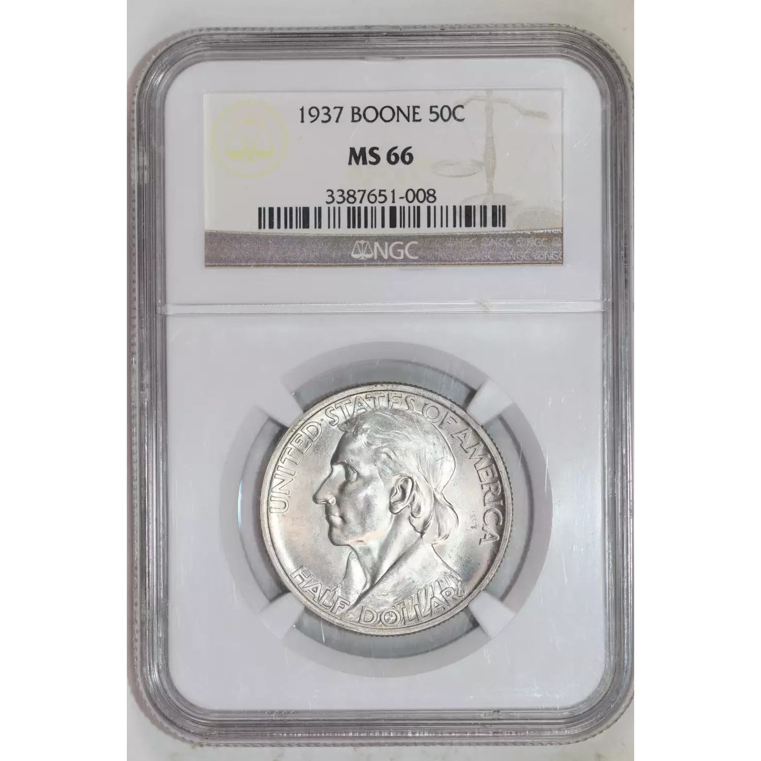 1937 BOONE SILVER COMMEMORATIVE HALF DOLLAR NGC MS66
