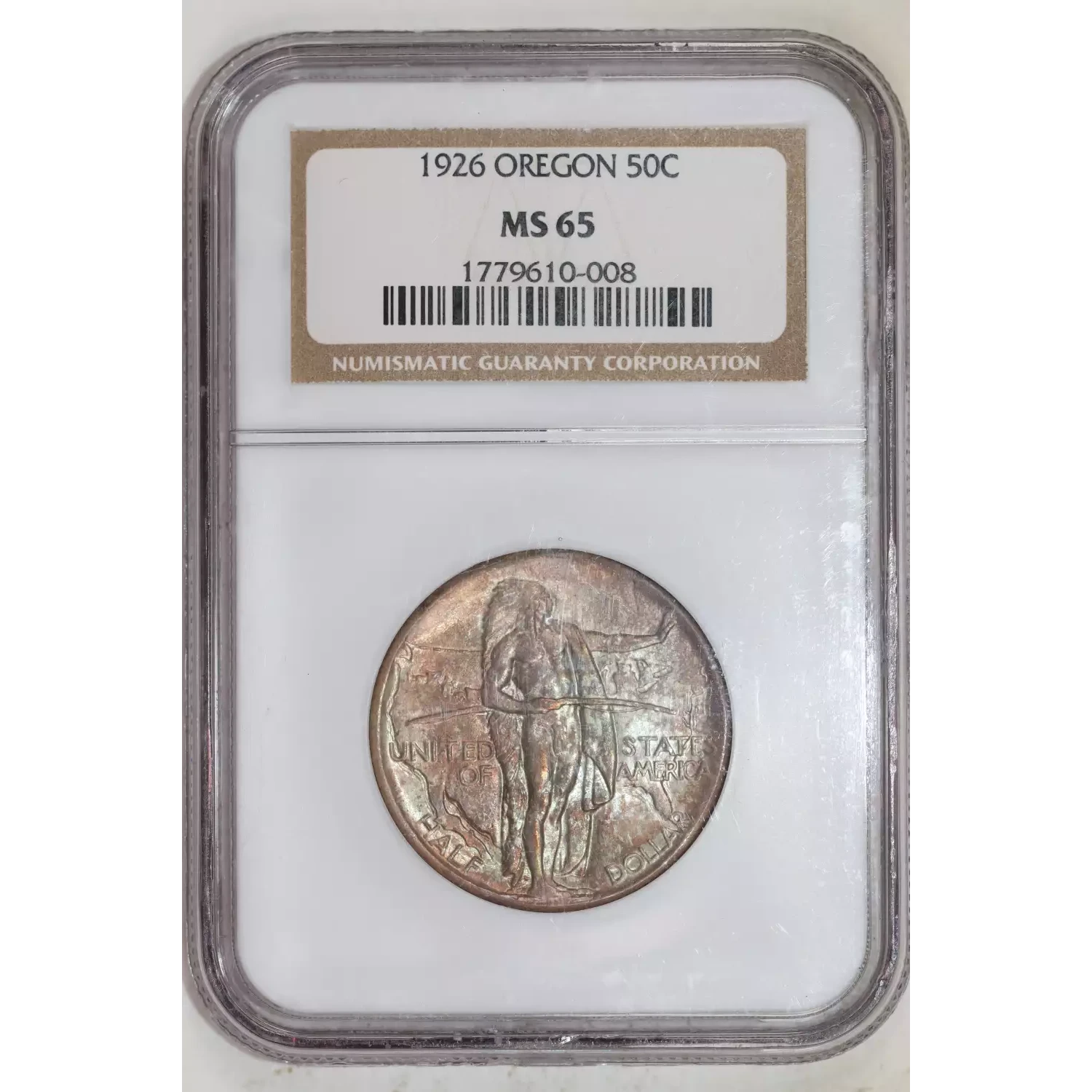 1926 OREGON SILVER COMMEMORATIVE HALF DOLLAR NGC MS65