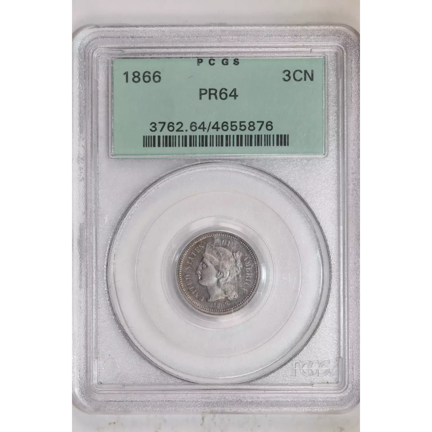 1866 Three Cent Pieces (Nickel) PCGS PR-64