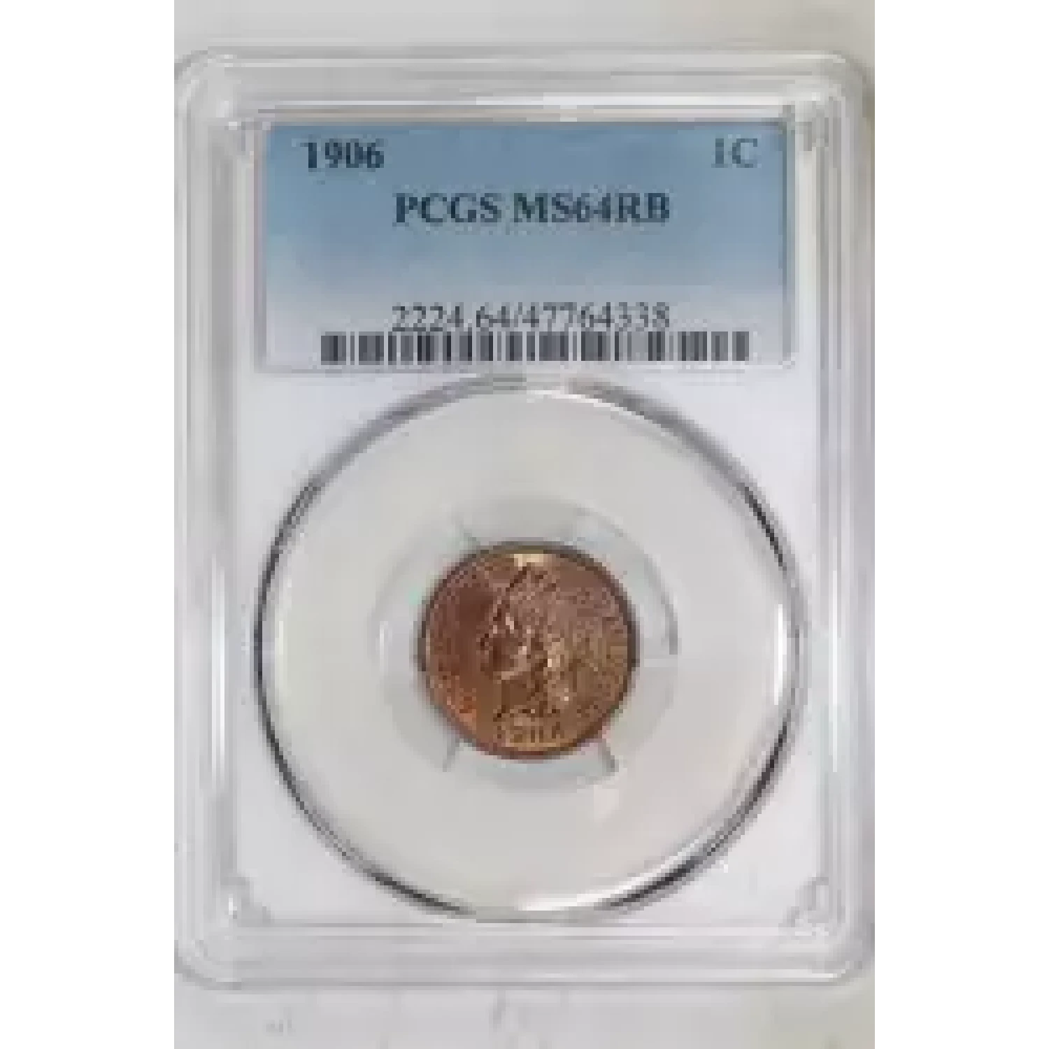 1906 INDIAN HEAD CENT PCGS MS64 RB