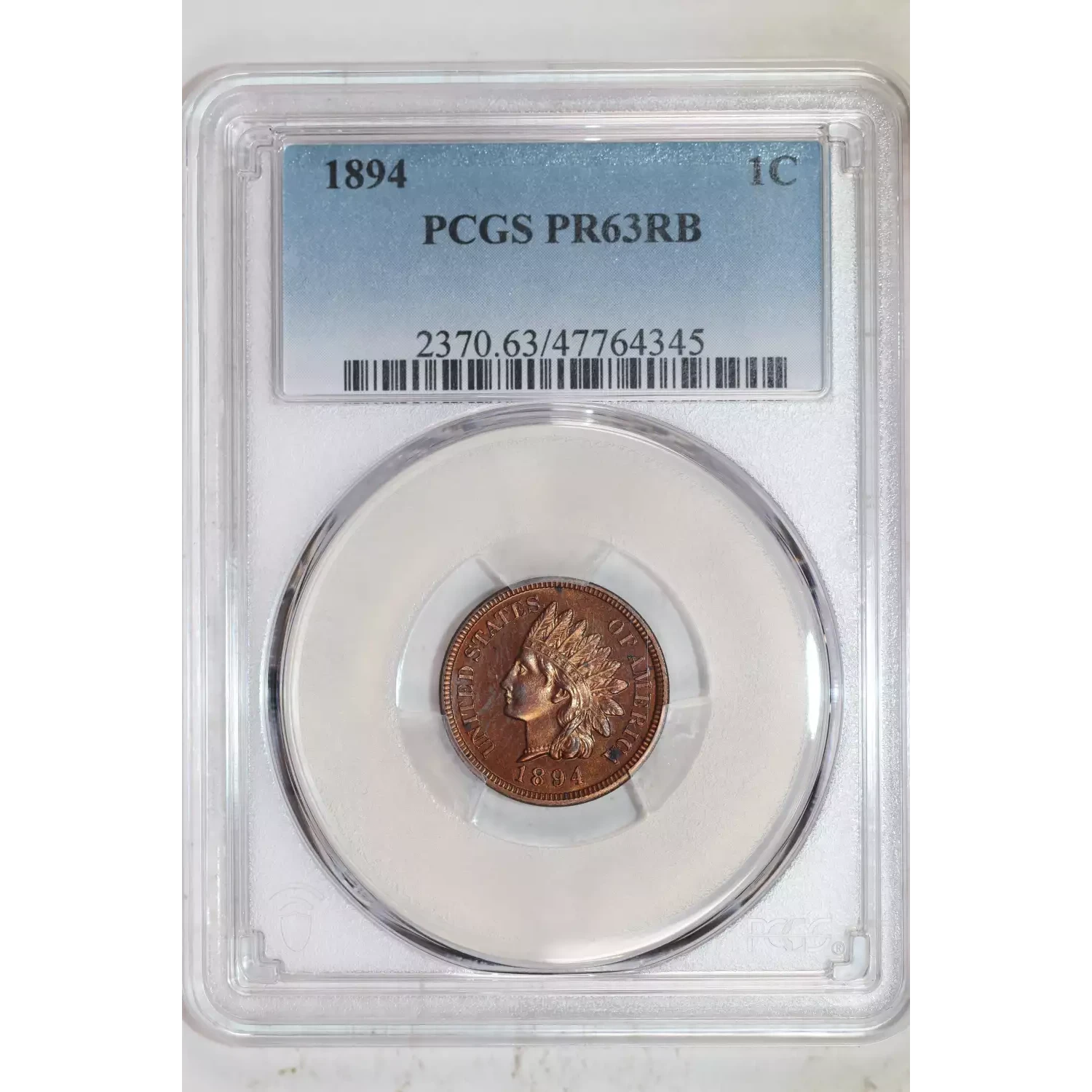 1894 PROOF INDIAN HEAD CENT PCGS PR63 RB