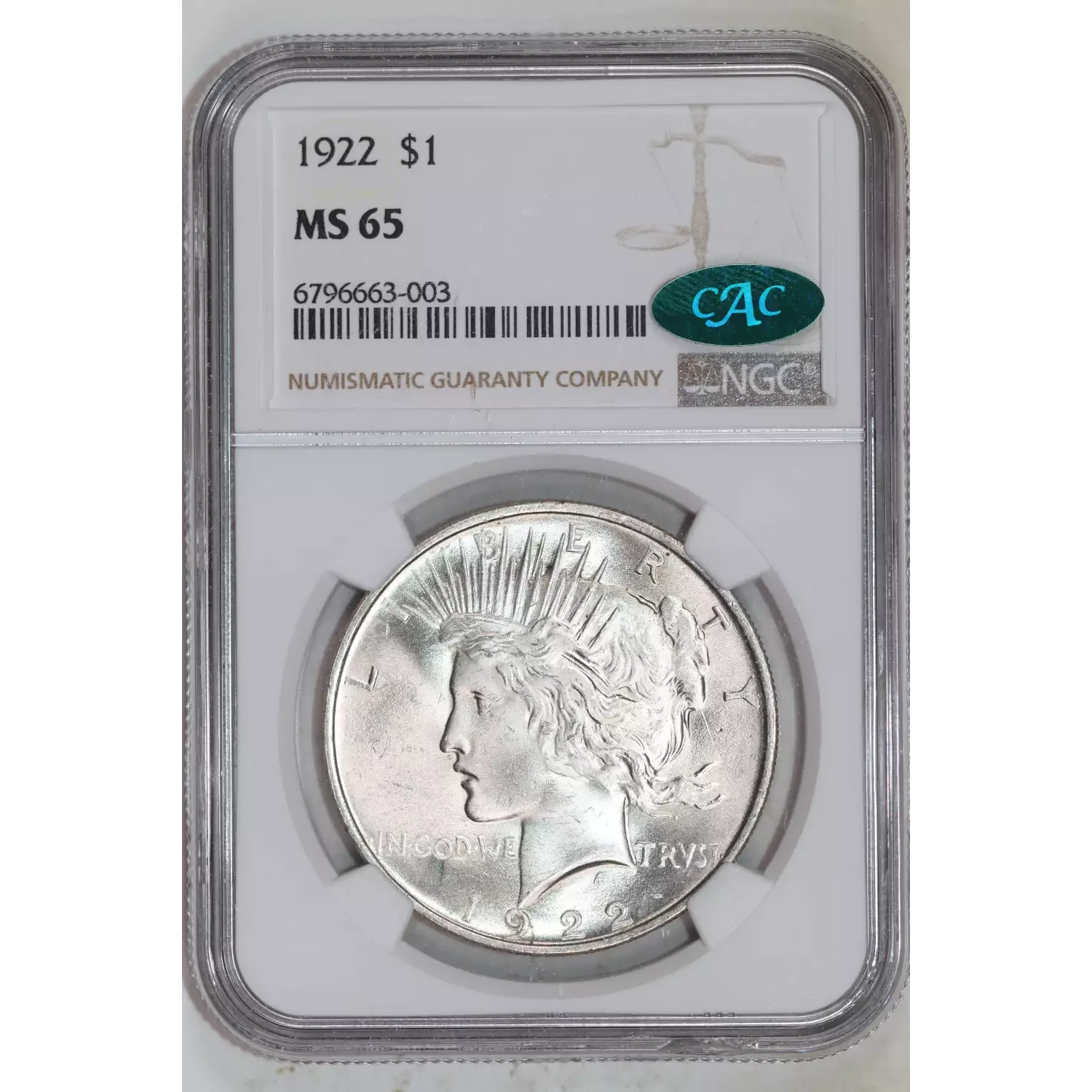 1922 Peace Silver Dollar NGC MS-65 CAC