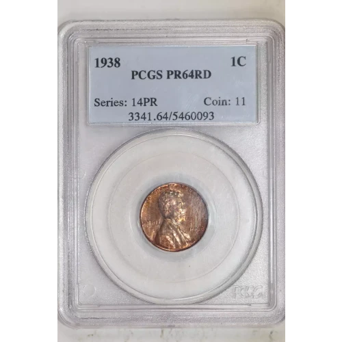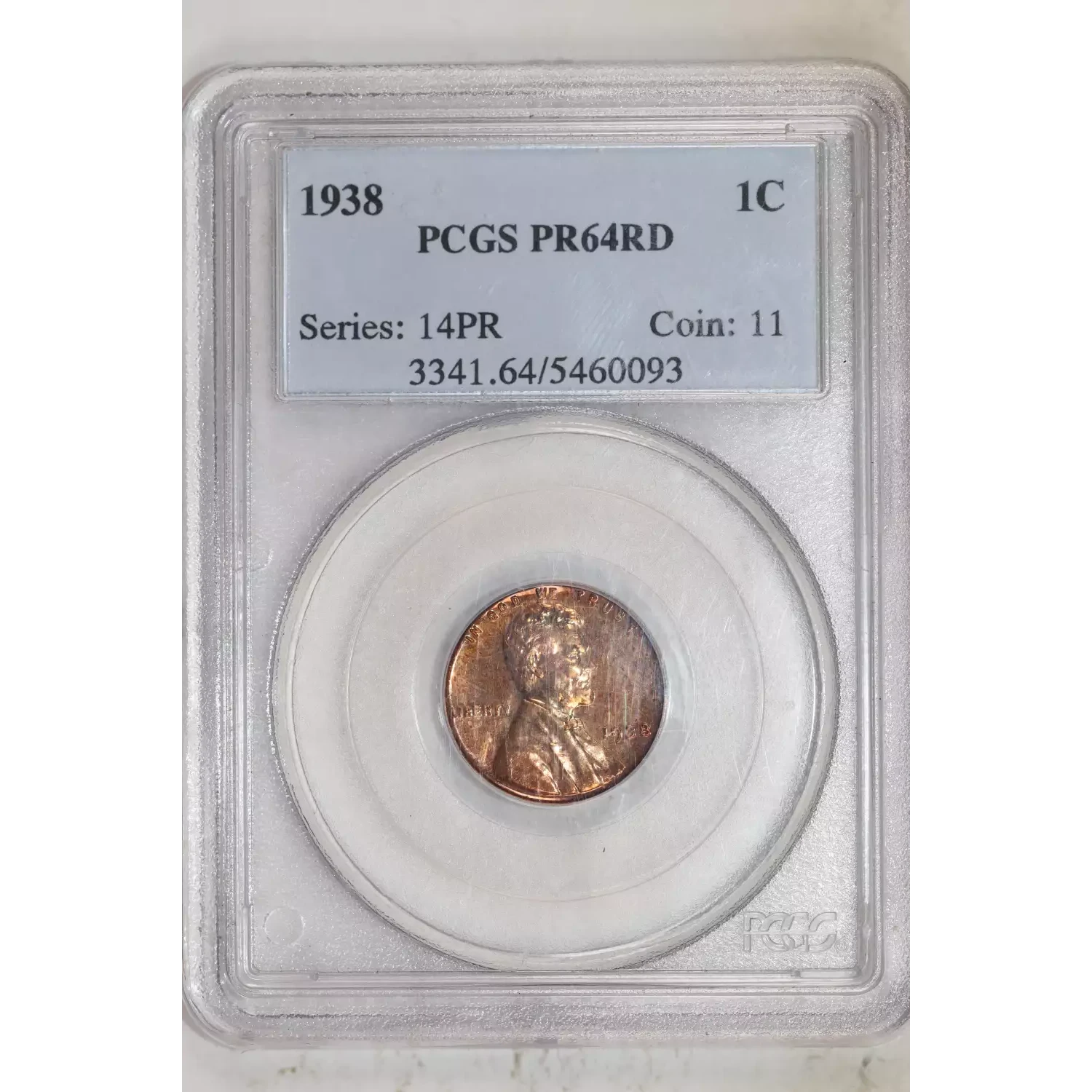 1938 PROOF LINCOLN CENT PCGS PR64 RED