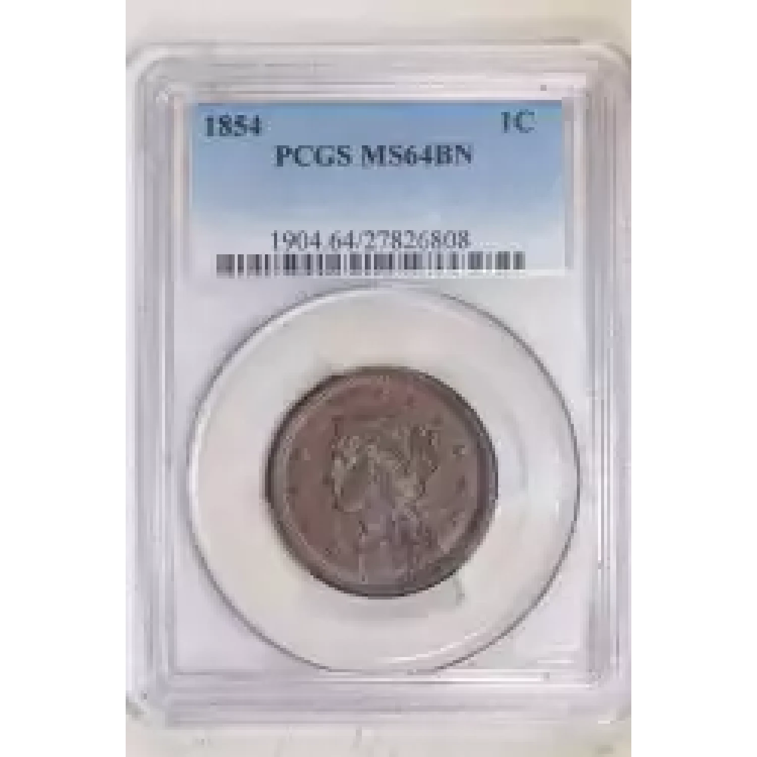 1854 LARGE CENT PCGS MS64 BN PQ!