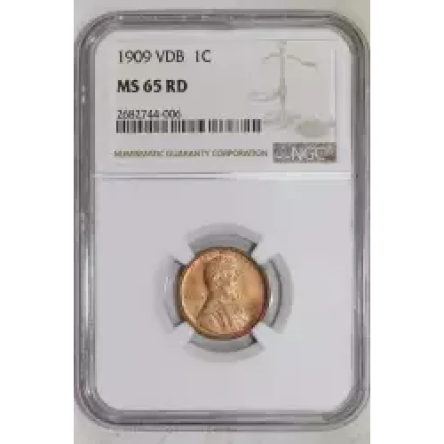 1909 VDB LINCOLN WHEAT CENT NGC MS65 RED