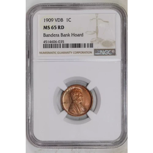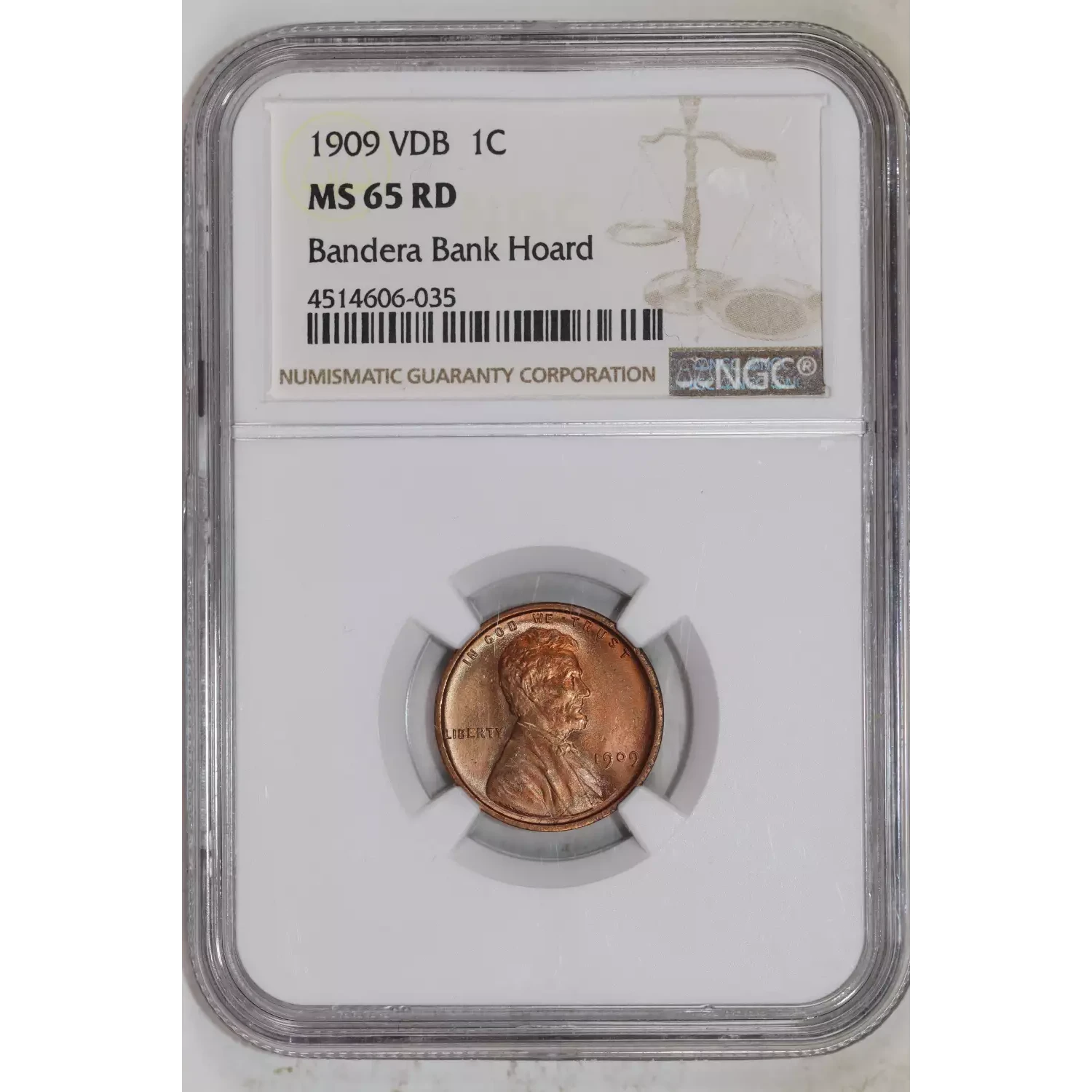 1909 VDB LINCOLN WHEAT CENT NGC MS65 RED