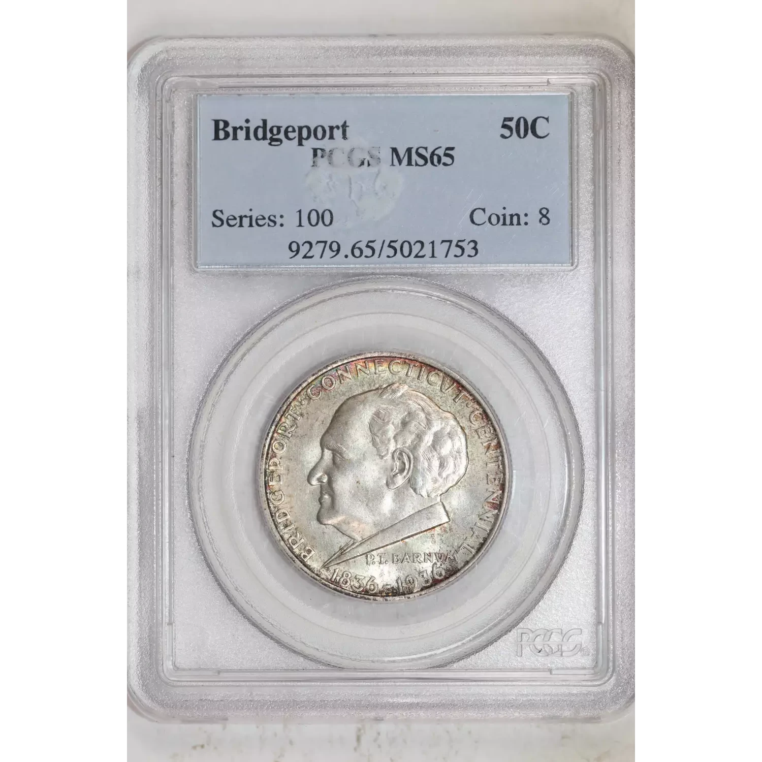 1936 BRIDGEPORT SILVER COMMEMORATIVE HALF DOLLAR PCGS MS65