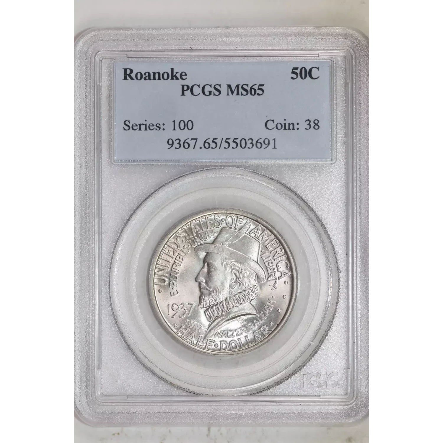 1937 ROANOKE SILVER COMMEMORATIVE HALF DOLLAR PCGS MS65 VERY PQ!