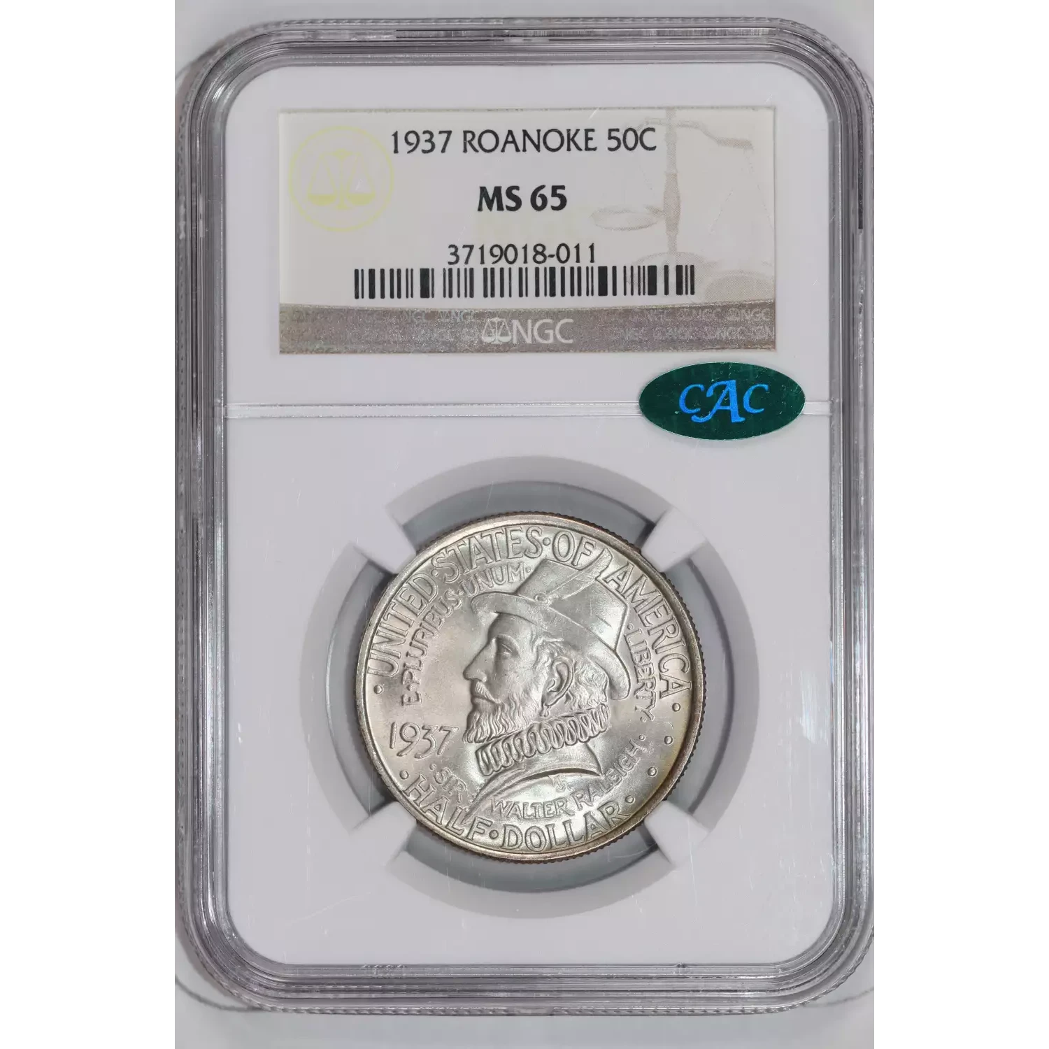 1937 ROANOKE SILVER COMMEMORATIVE HALF DOLLAR NGC MS65 VERY PQ CAC!