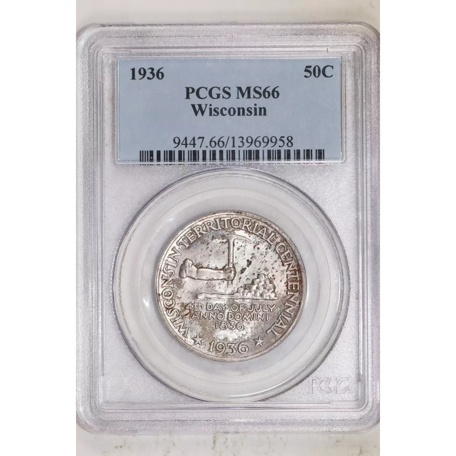 1936 WISCONSIN SILVER COMMEMORATIVE HALF DOLLAR PCGS MS66 ORIGINAL PQ!